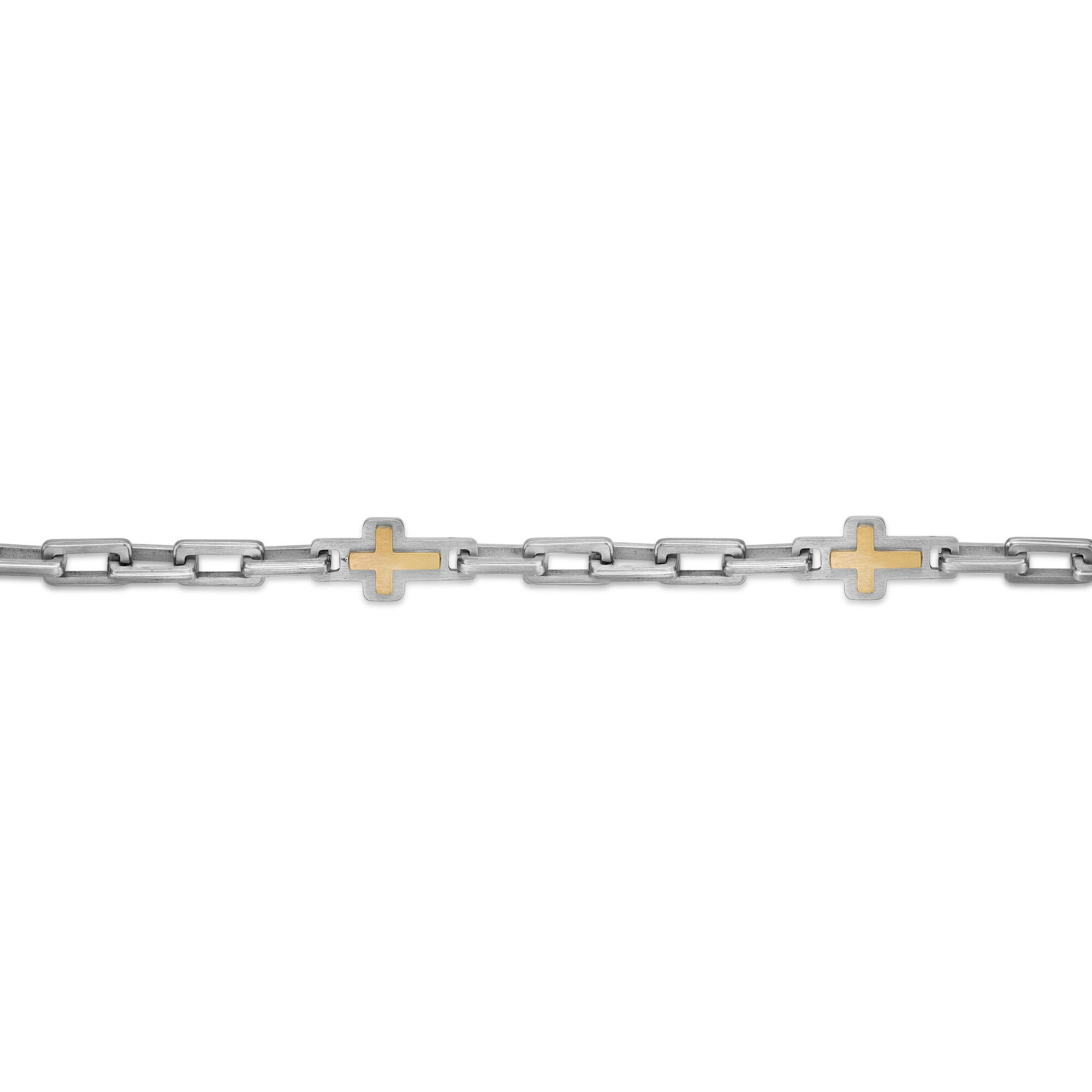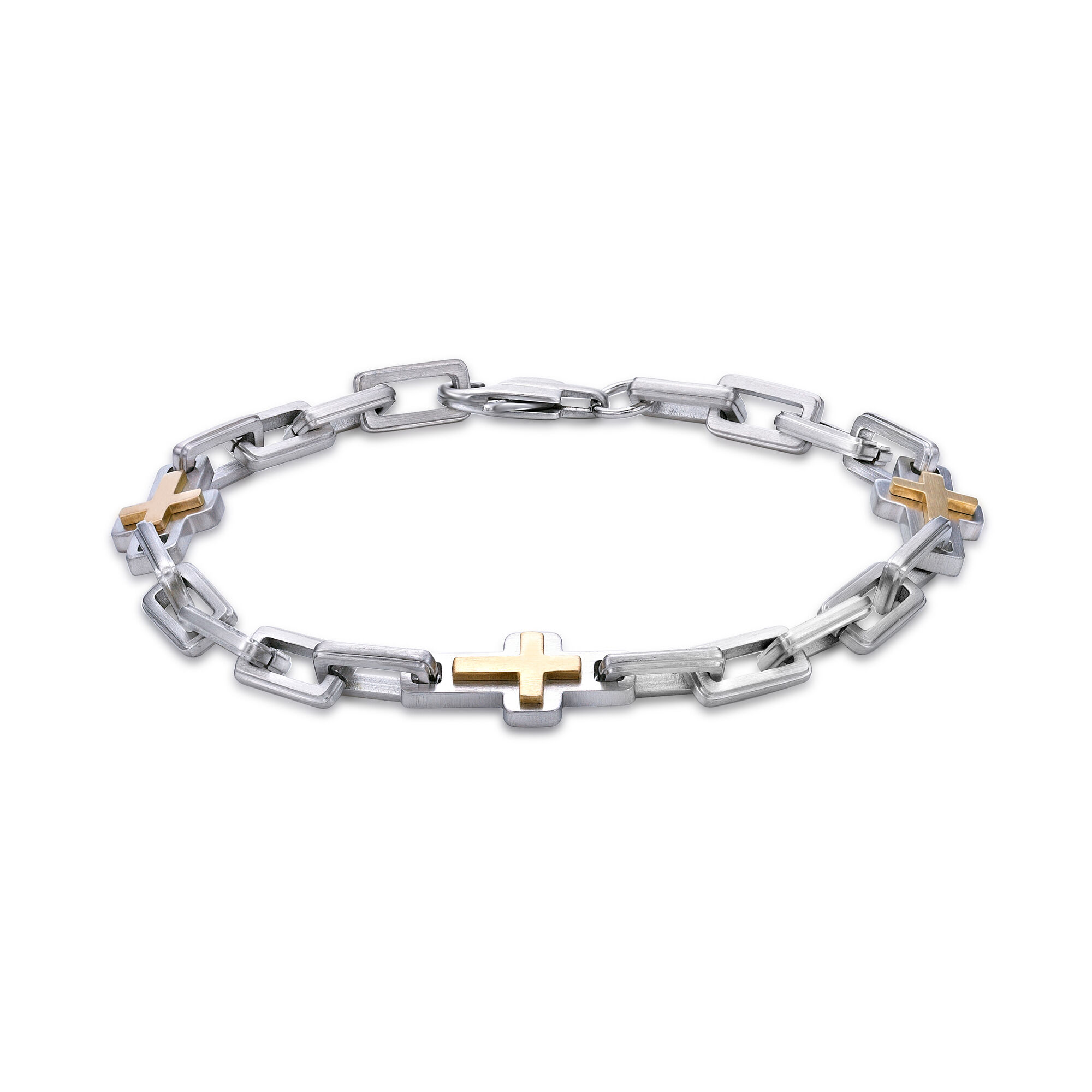 Elevate your style with our Men's Stainless Steel Gold Tone Ion Plated Cross Link Bracelet - 8.5 Inch. Add this bold and eye-catching piece to your jewelry collection today and step up your accessory game. Don't miss out on the opportunity to own a piece that combines classic charm with contemporary design. Buy now and make a lasting impression wherever you go!
