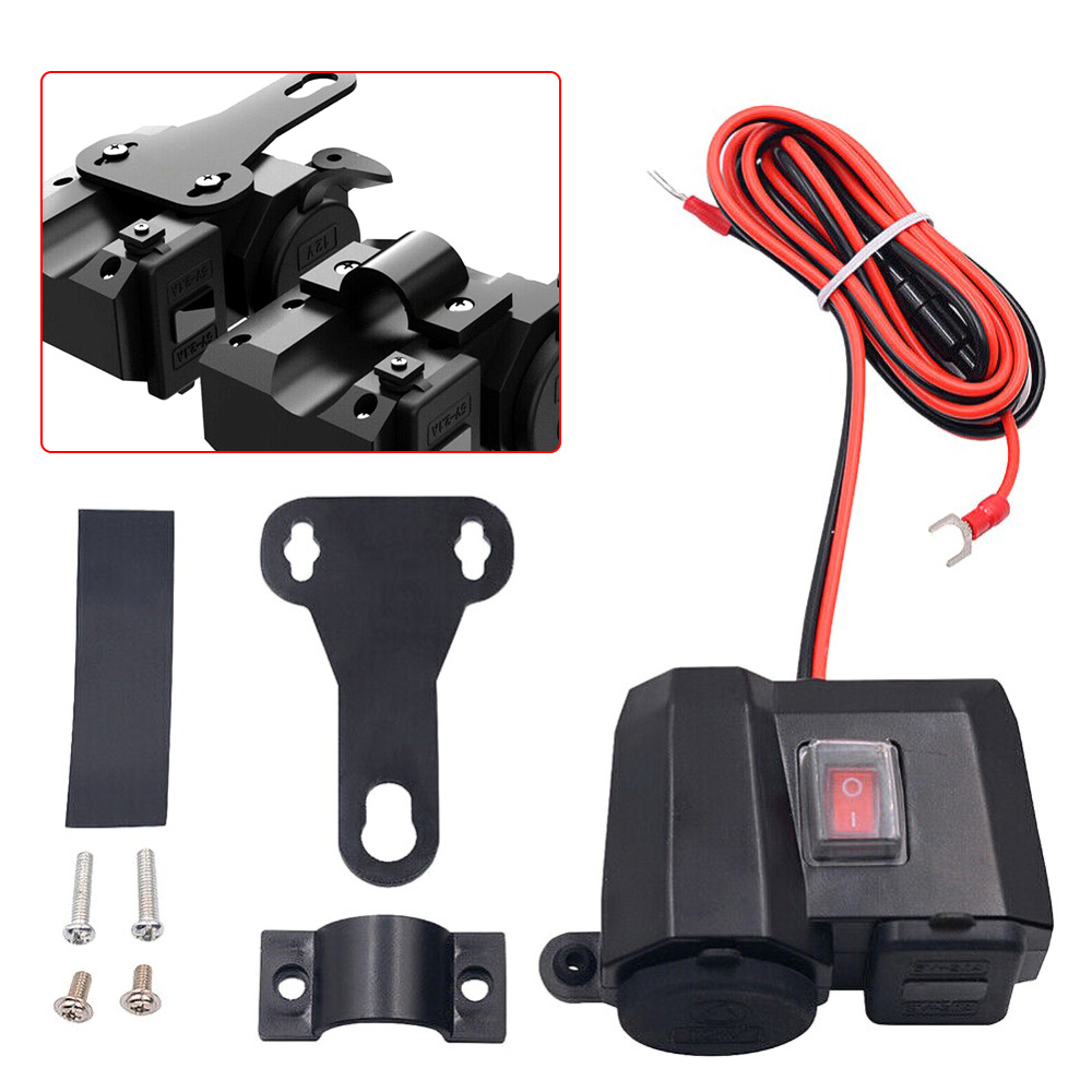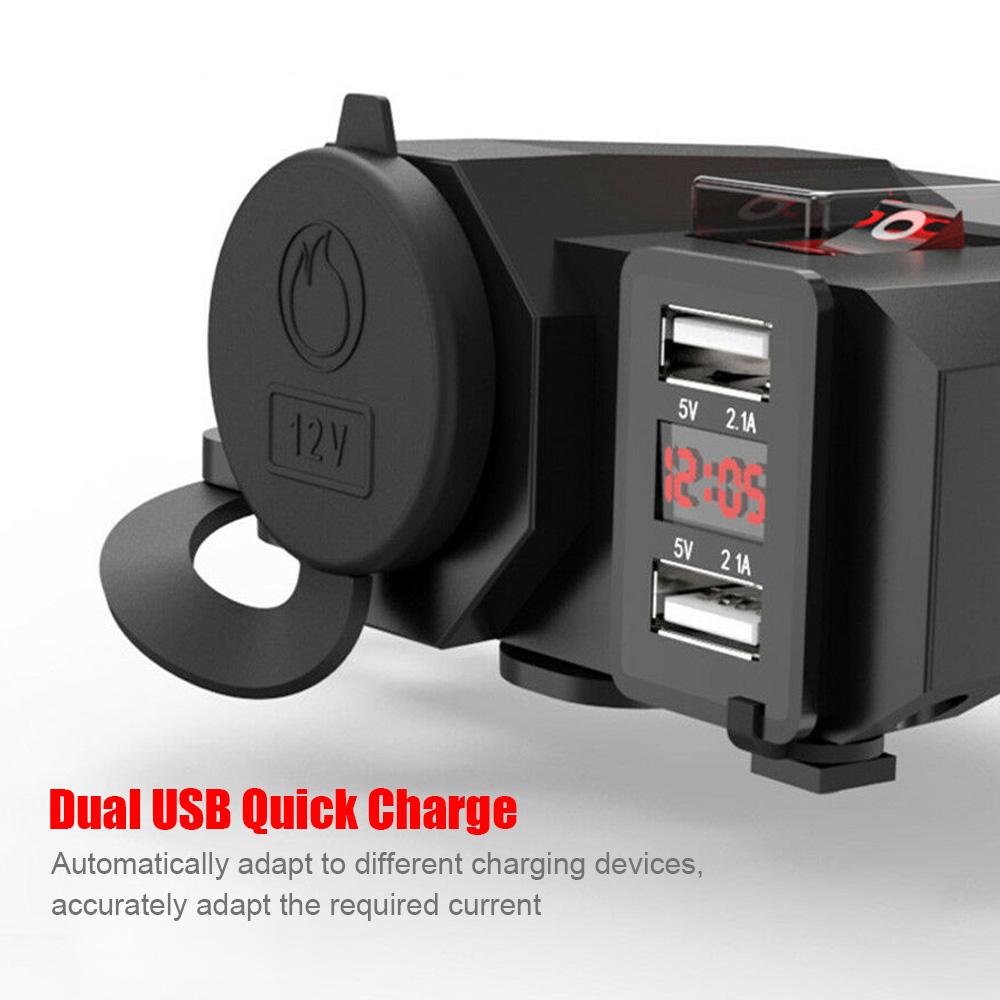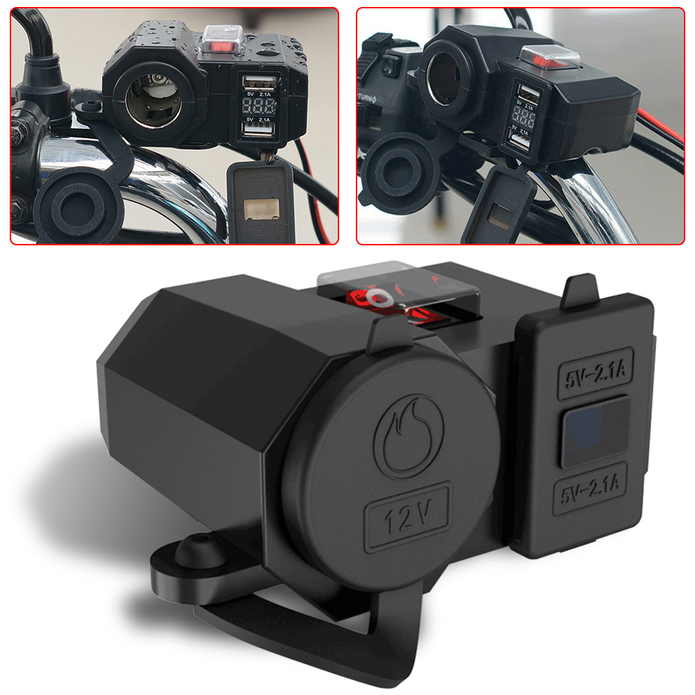 1X Motorcycle Cigarette Lighter Socket Outlet Dual USB Charger and Voltmeter