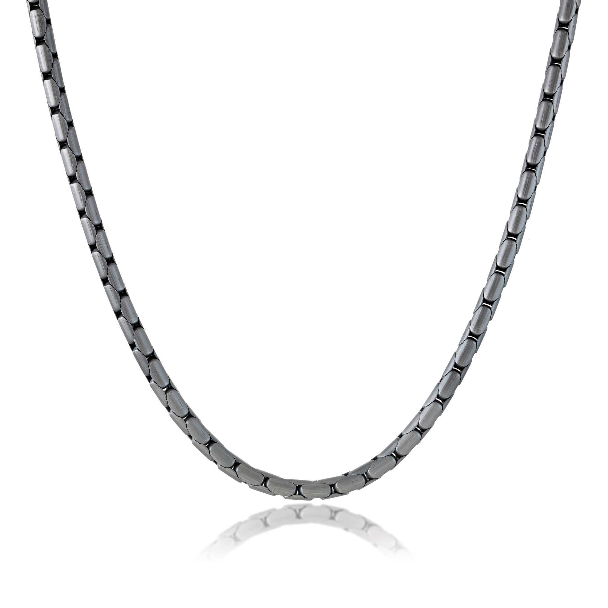 Upgrade your style game with the Gray Ion Plated Stainless Steel 4MM Cobra Chain Necklace - 24Inch. This chain is not just an accessory; it's a representation of your individuality and confidence. Stand out from the crowd and let your personality shine through with this stunning piece. Don't miss out on the opportunity to elevate your look to new heights!