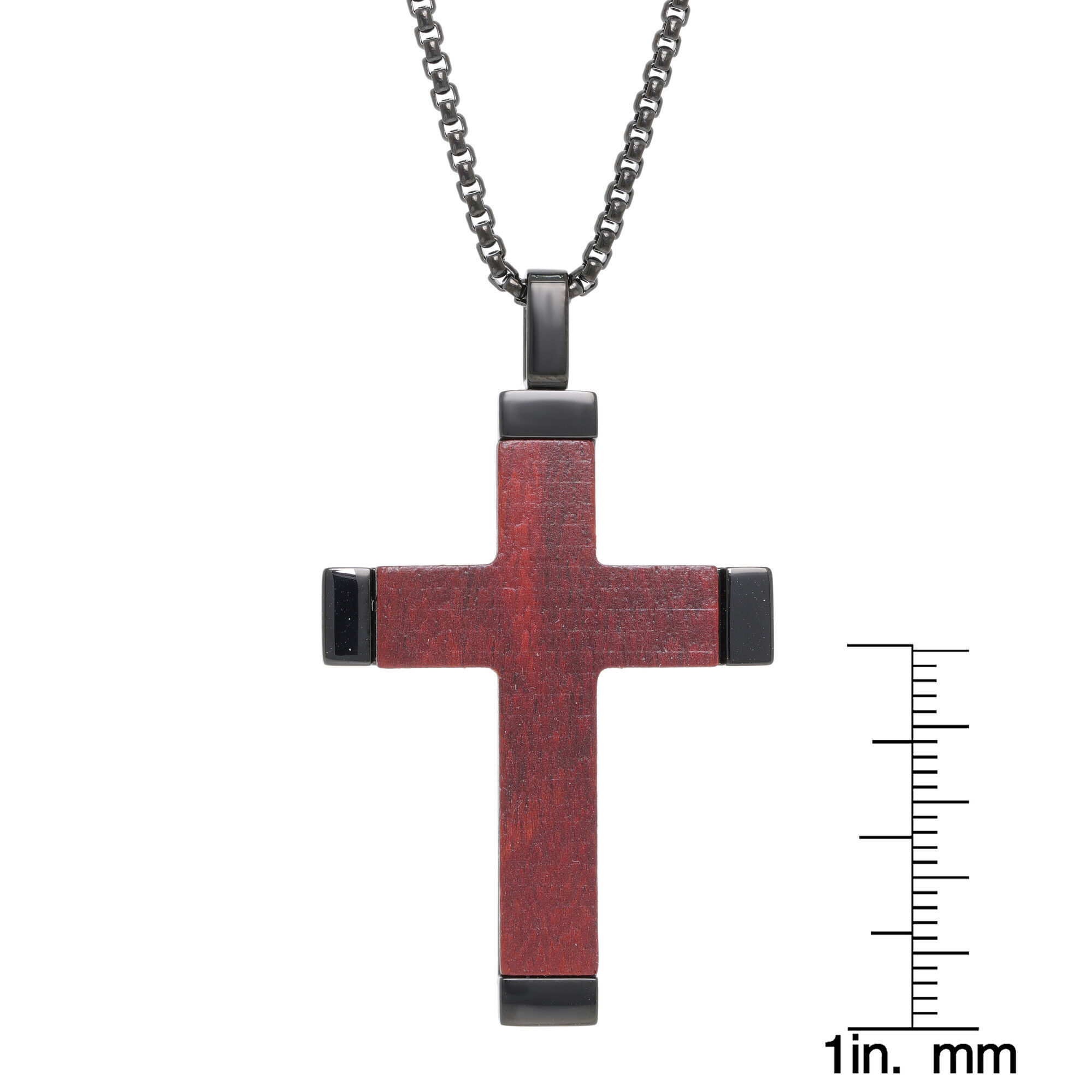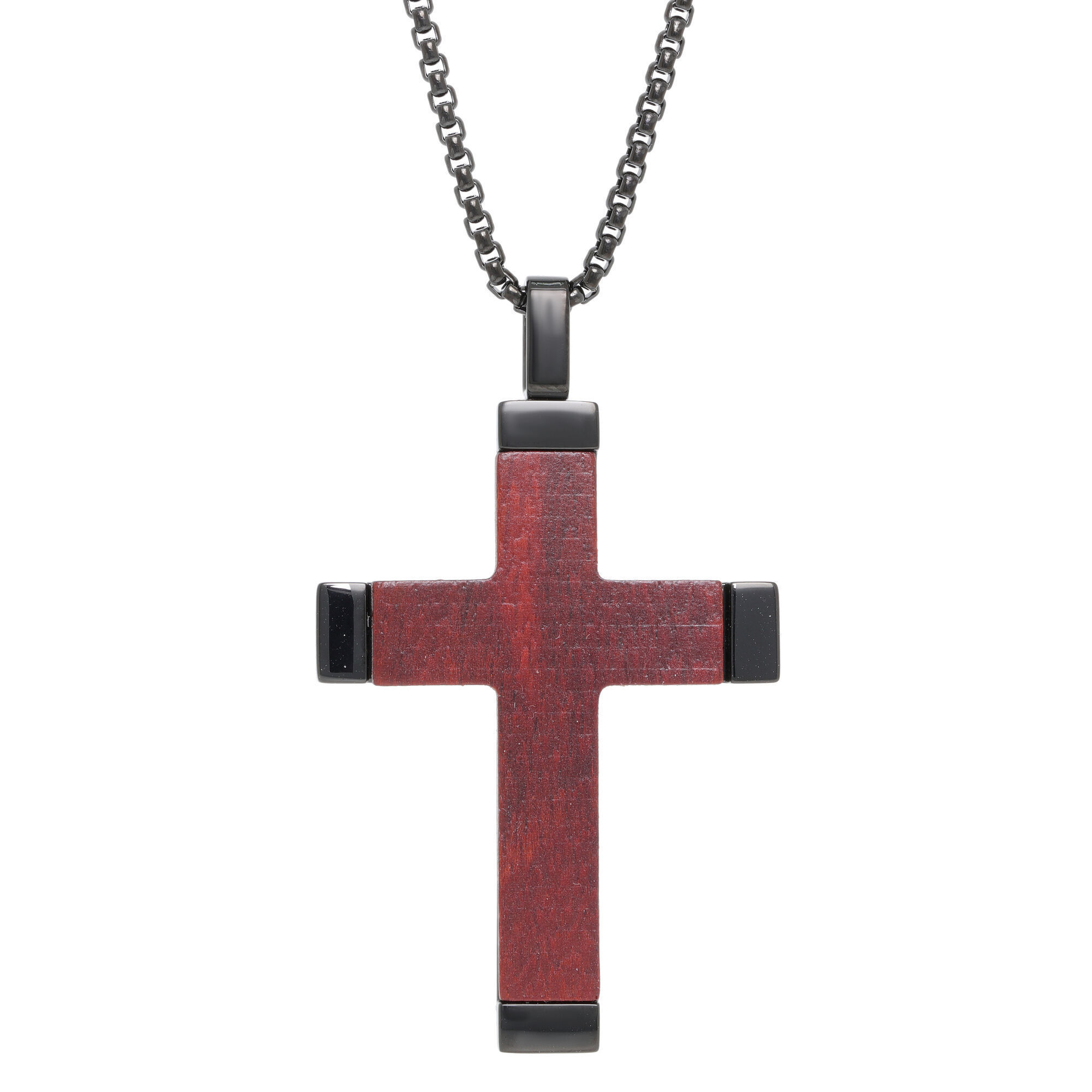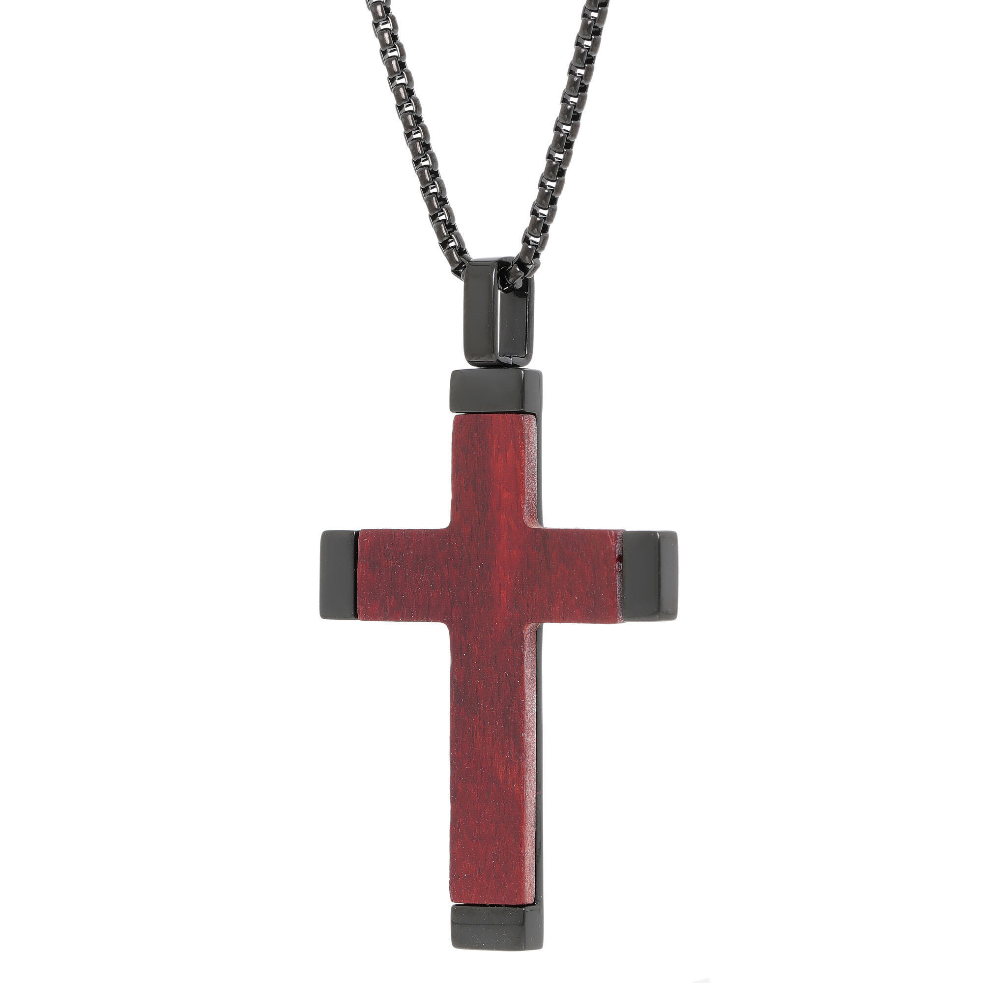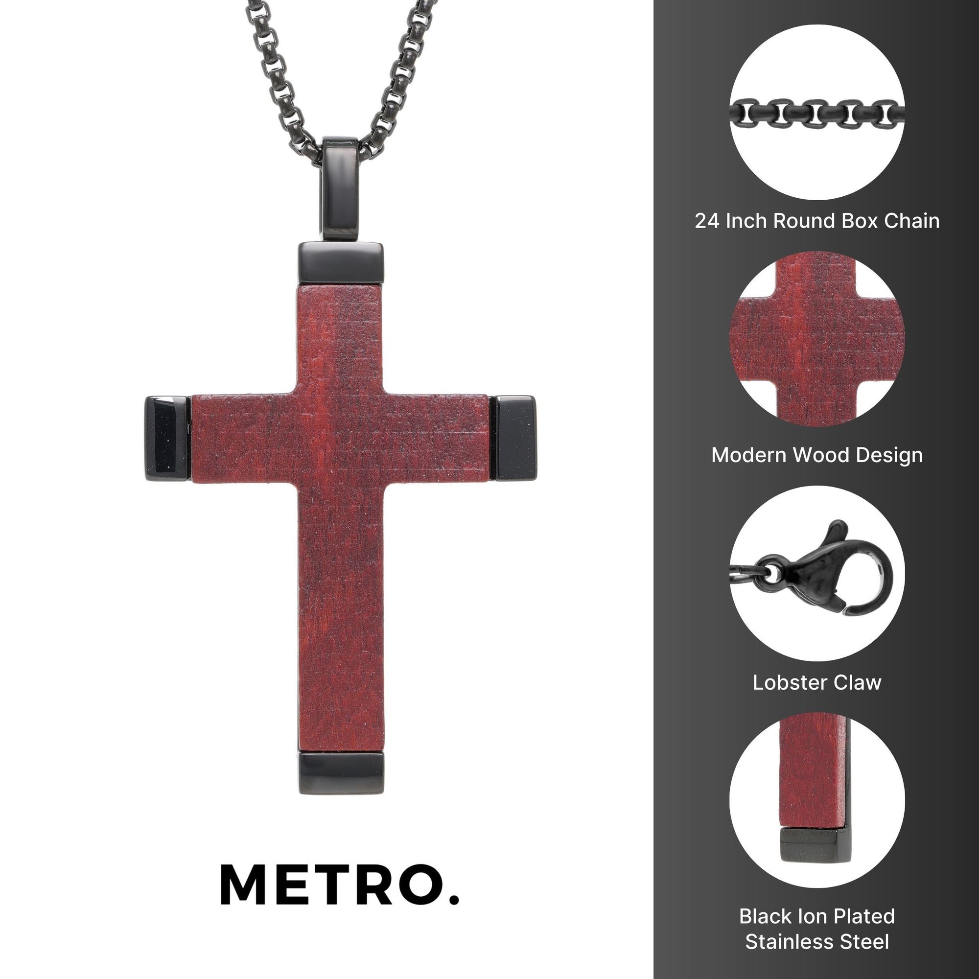 Embrace the timeless elegance and strength of this Men's Black Ion Plated Stainless Steel Modern Wood Cross Pendant. Crafted with meticulous attention to detail, this pendant exudes a sense of modernity and sophistication. The striking contrast between the black ion-plated stainless steel and the warm tones of the wood cross creates a captivating visual appeal that is sure to resonate with your sense of style and faith.