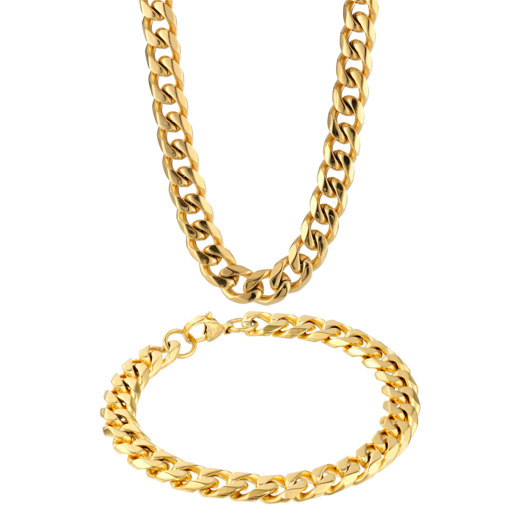 Men's Stainless Steel Curb Chain Bracelet and Necklace Jewelry Set Gold-Tone 22