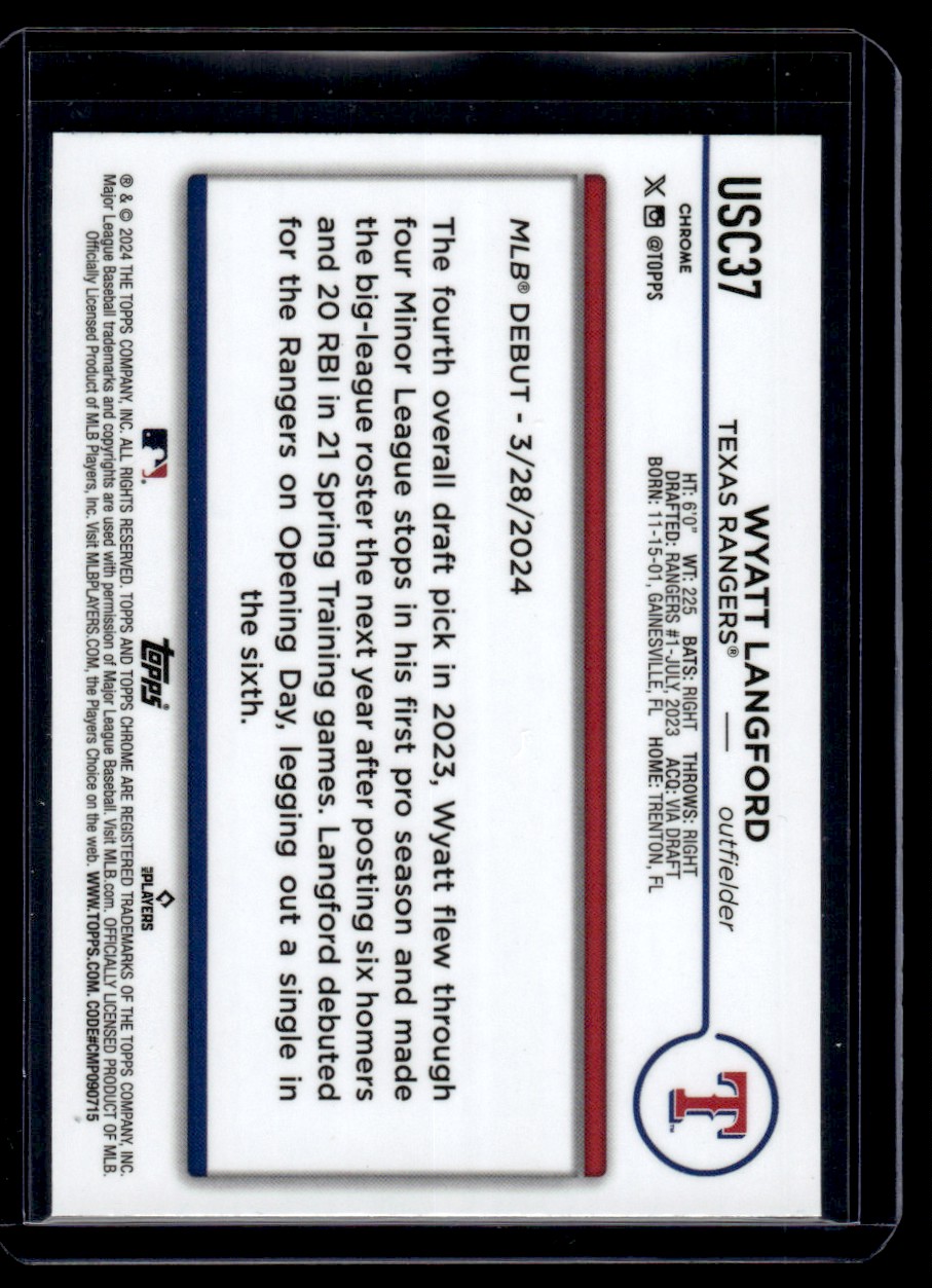 2024 Topps Chrome Update Wyatt Langford RC Texas Rangers #USC37