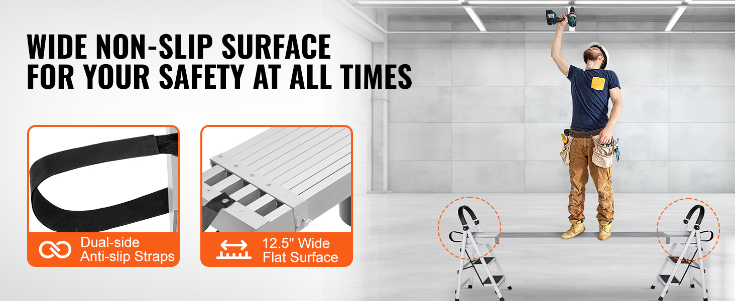 Nylon Sticky Straps: We are always concerned about your security. So the aluminum plank features a sticky strap to avoid slipping off the ladder. And a non-slip surface to increase friction to avoid accidents.