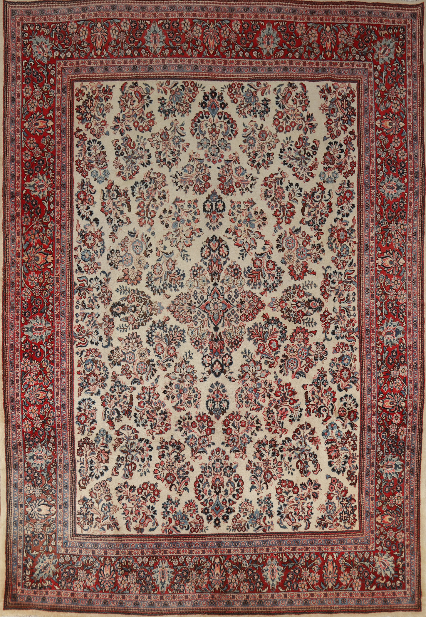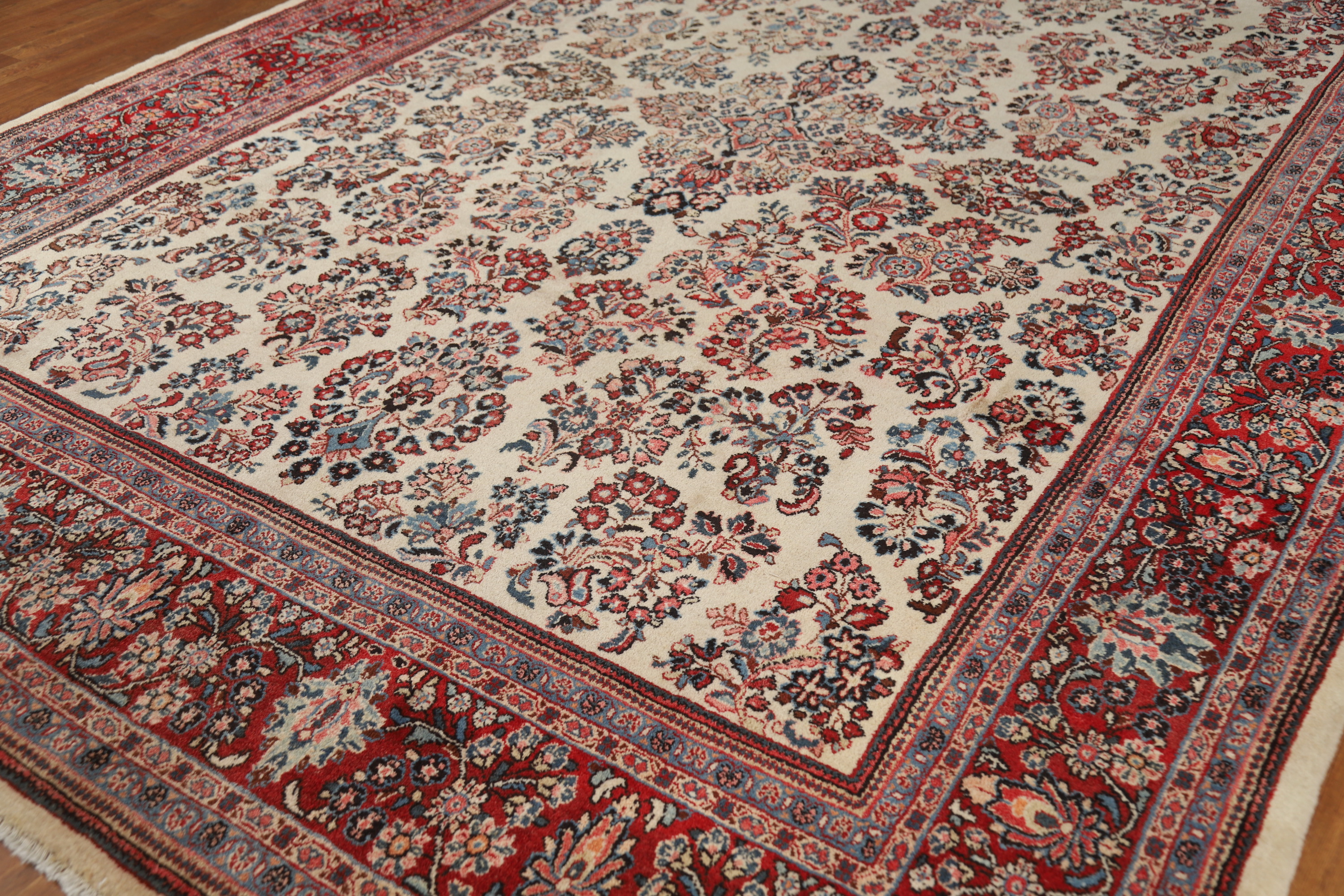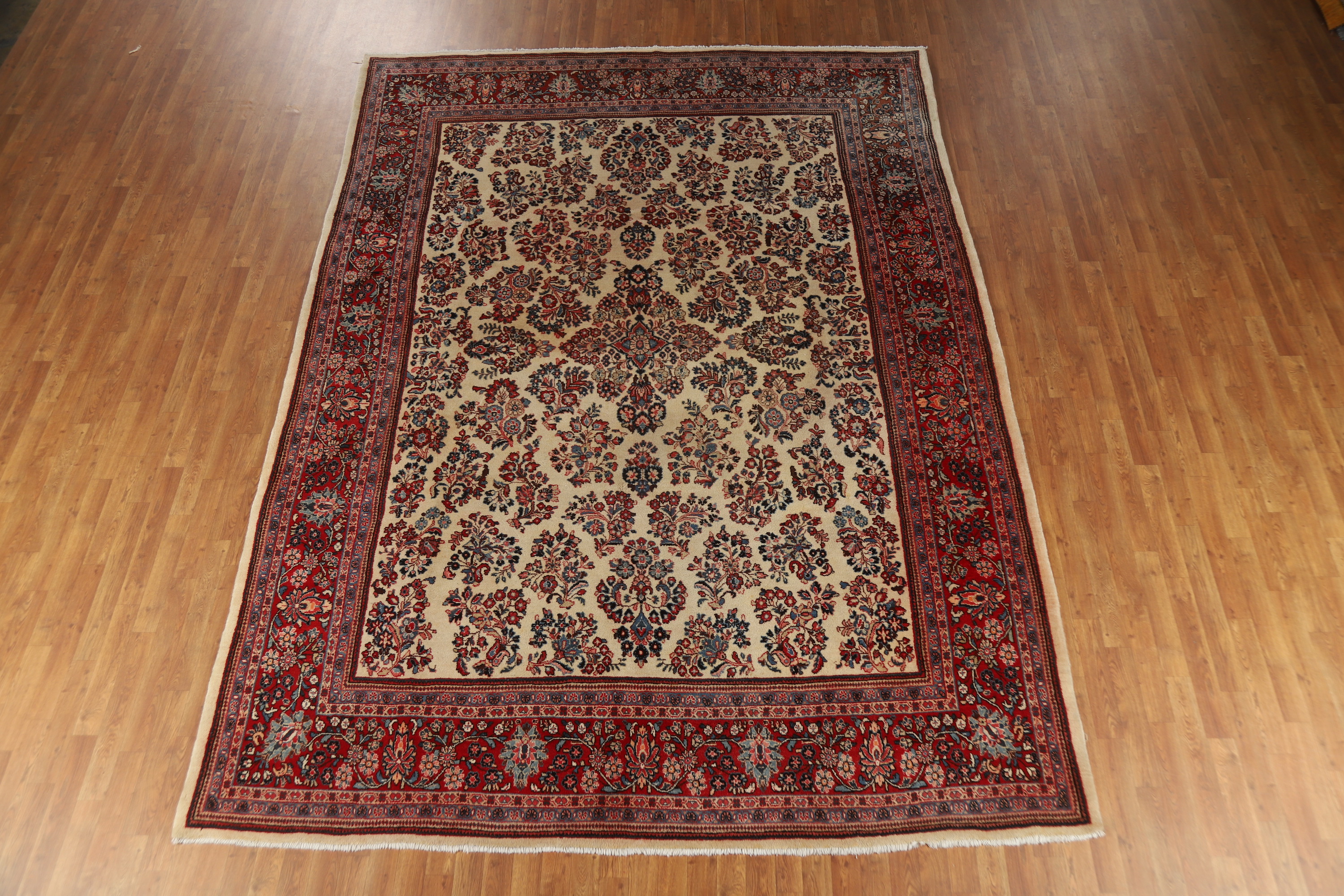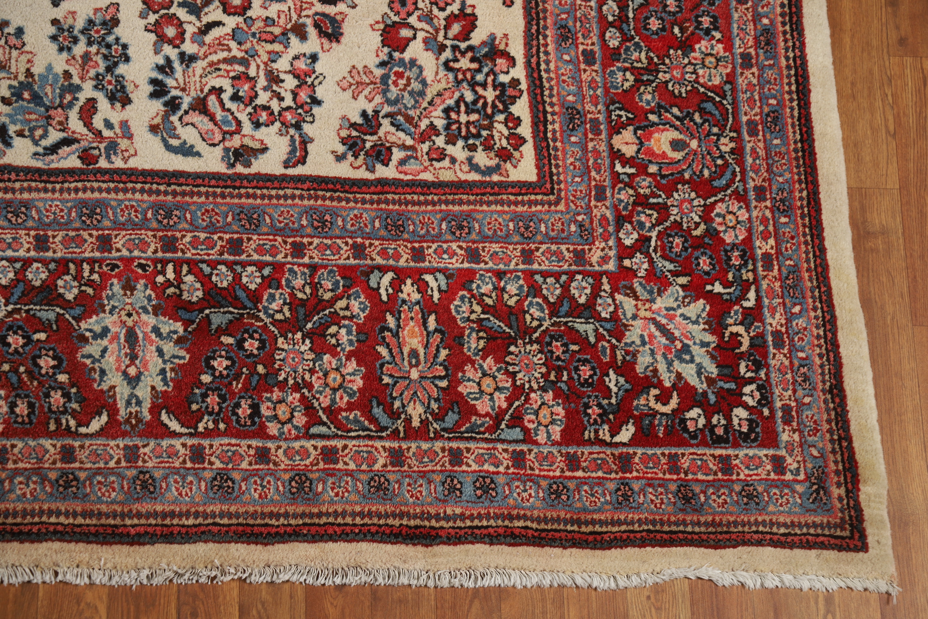 Vintage Floral Traditional Hand-knotted Ivory Wool Dining Room Rug 9x12 Carpet