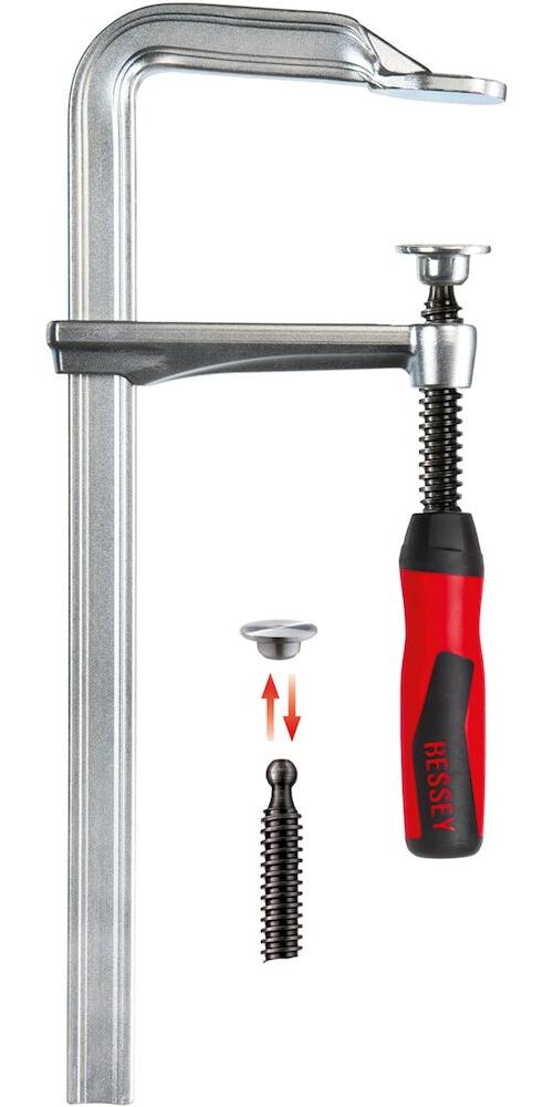 20 % mehr Spannkraft pro Spindelumdrehung durch optimiertes Schienenprofil Höchste Sicherheit durch geradlinige Kraftübertragung am Gleitbügel Spannkraft bis zu 6.000 N Vergüteter Gleit- und Festbügel für federndes und elastisches Spannen Hochwertiger 2-Komponenten-Kunststoffgriff Werkzeuglos wechselbare Druckplatten (ab 80 mm Ausladung)Text