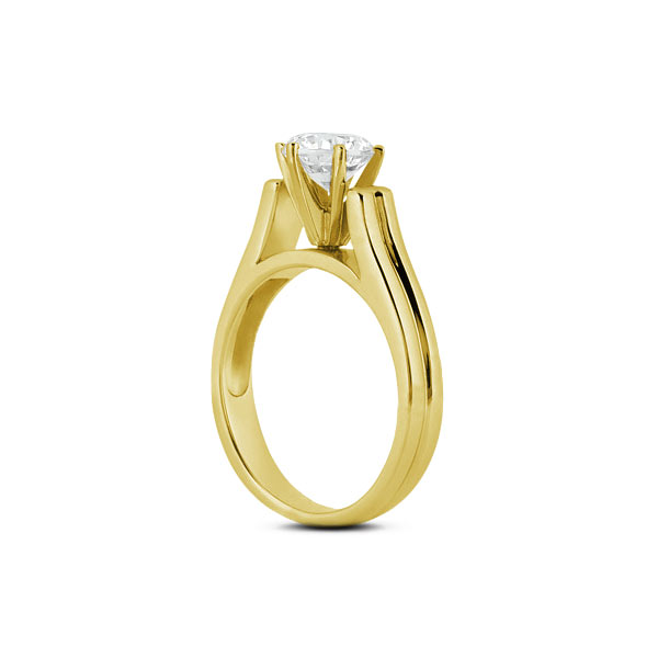 This breathtaking 18k yellow gold cathedral basket single-stone engagement ring with a 0.57 carat round brilliant cut diamond certified by AGI Gemological Laboratories as a Natural Earth Mined Diamond with E color, SI1 clarity enhanced, and with Ideal cut and proportions. To accentuate the glow of the stone on this unique piece our jewelry designer chose 6-prong setting. This item will come with a 3rd party certificate and an estimate appraisal value of $4,205.
