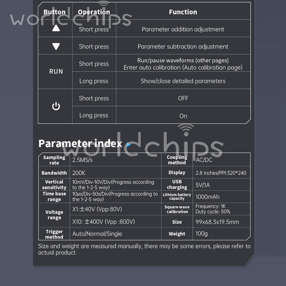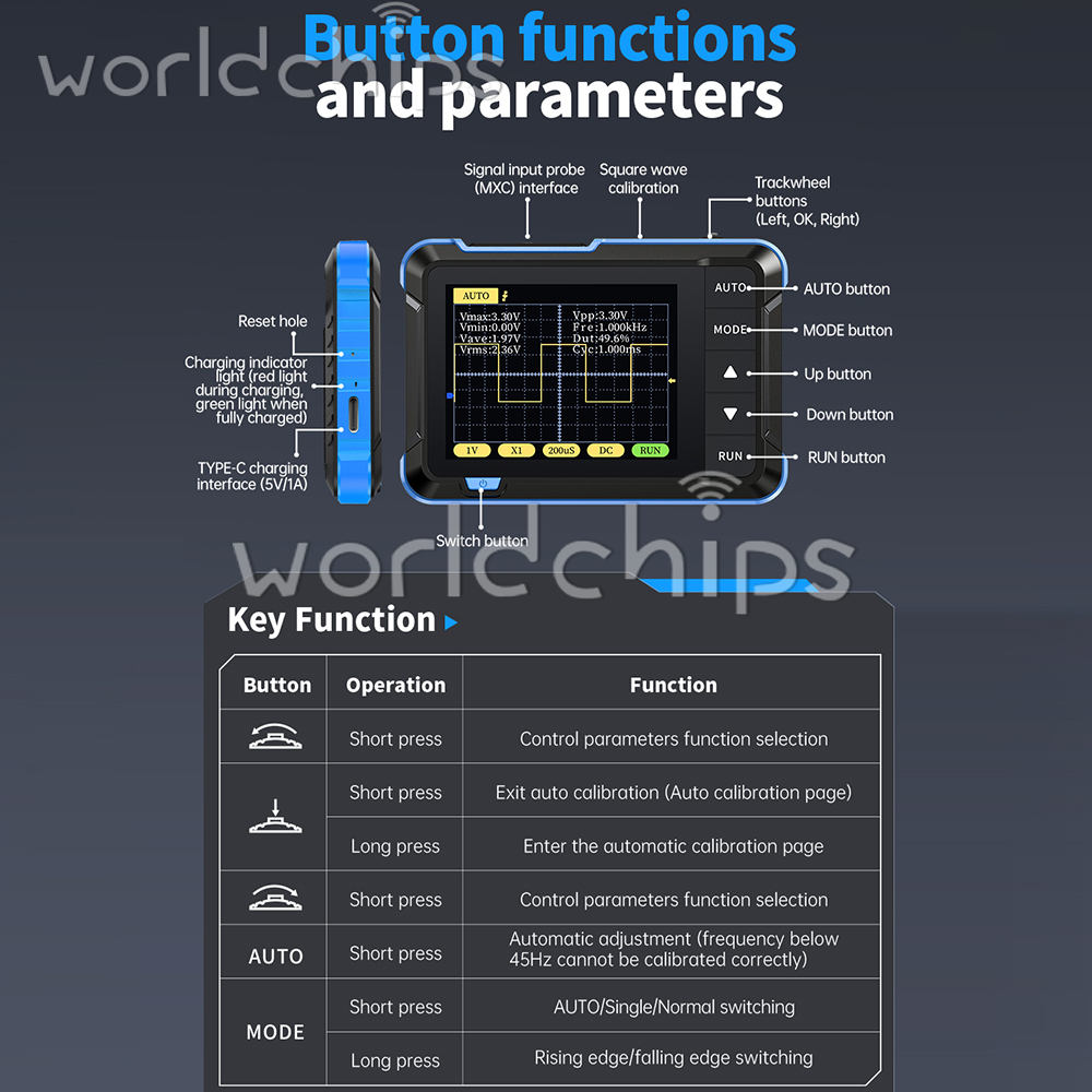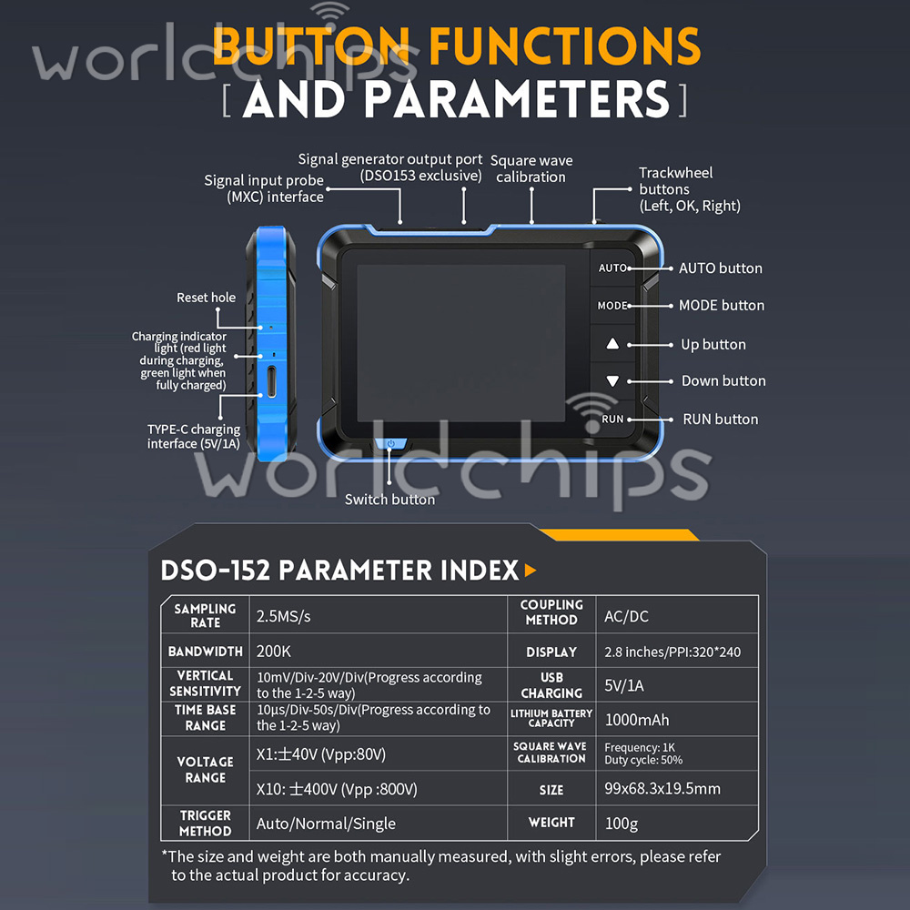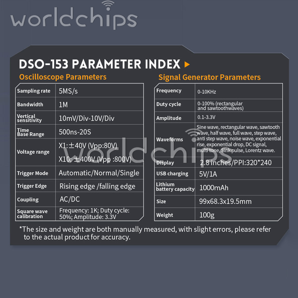 2. It is also equipped with a multi-function signal generator (10KHz). Equipped with a 2.8-inch 320 * 240 resolution high-definition LCD screen, built-in 1000mAh high-quality lithium battery, fully charged can be used for about 4 hours