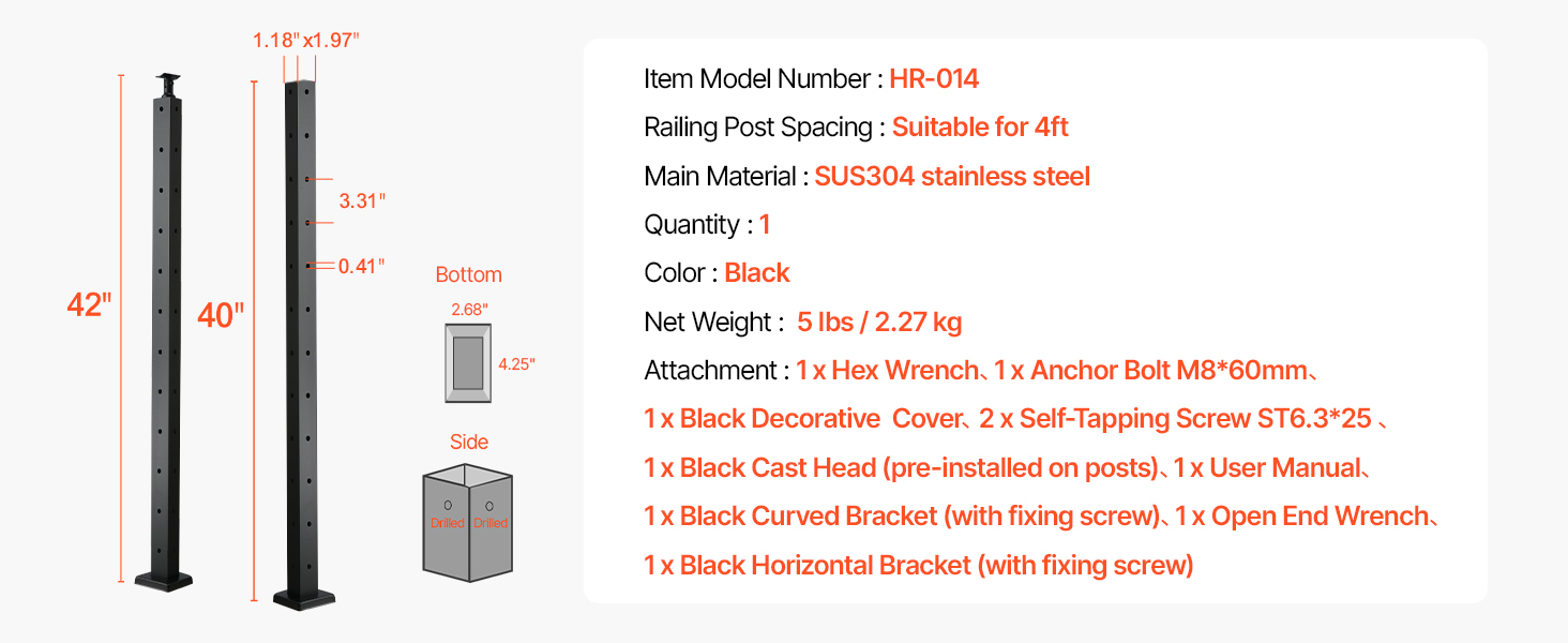 Experience a reliable solution for your railing needs with this high-quality stainless steel post. Constructed from robust SUS304 stainless steel, it combines durability with a sleek appearance. Designed for straightforward installation, it features pre-drilled holes and comes with essential accessories. Perfect for enhancing the safety and aesthetics of decks, railings, and other structures, all while adhering to necessary standards.