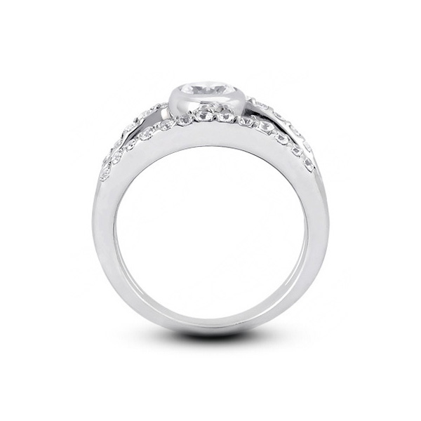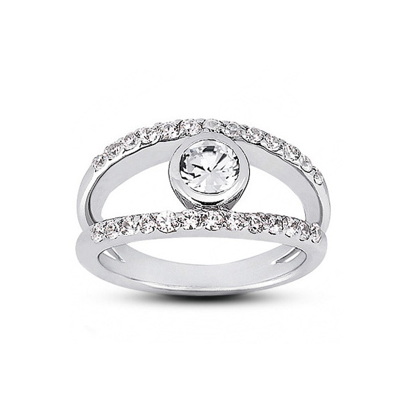 This breathtaking 1.00 carat total 18k white gold halo side stone engagement ring. The center round brilliant cut diamond weight 0.35 carat certified by AGI Gemological Laboratories as a Natural Earth Mined Diamond with E color, SI1 clarity enhanced, and with Very Good cut and proportions. To accentuate the glow of the stone on this one and only jewel our jewelry designer chose bezel setting for the center diamond and pave setting for the side stones. This jewelry will come with a 3rd party certificate and an estimate appraisal value of $4,432.