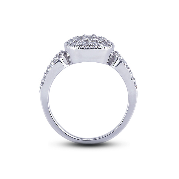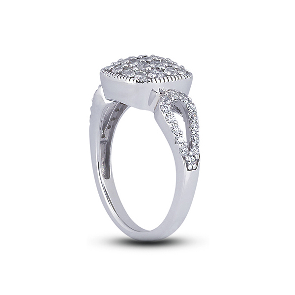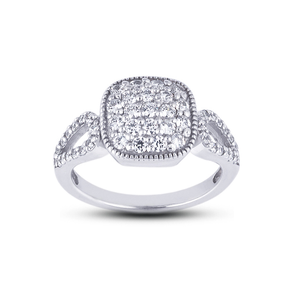 Beautifully graceful in its simplicity, this 0.72 carat total 18k white gold split shank milgrain anniversary ring with round brilliant cut diamonds certified by AGI Gemological Laboratories as Natural Earth Mined Diamonds with E color, VS1 clarity, and with Ideal cut and proportions. To accentuate the glow of the diamond on this unique jewel our jewelry designer used pave setting. This item will come with a 3rd party certificate and an estimate appraisal value of $3,056.
