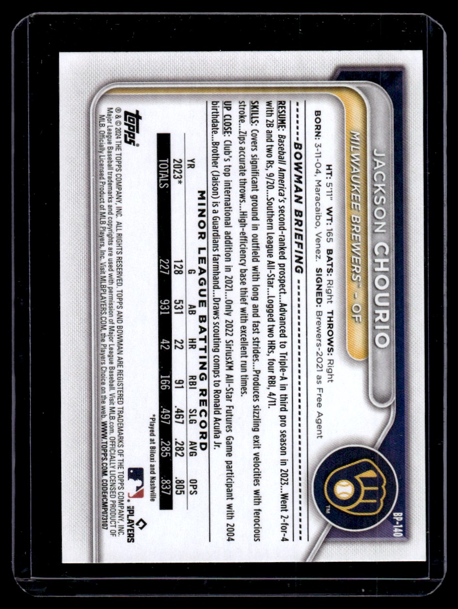 2024 Bowman Prospects Jackson Chourio Milwaukee Brewers #BP-140