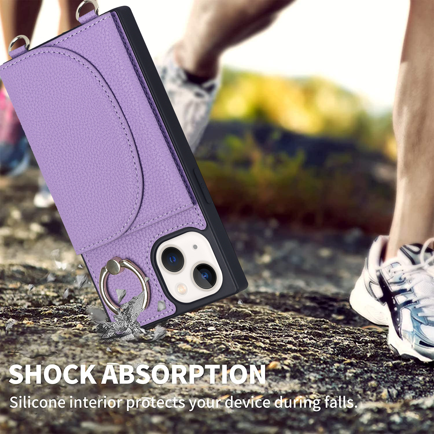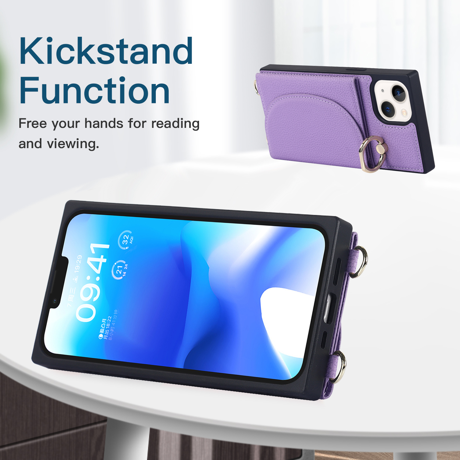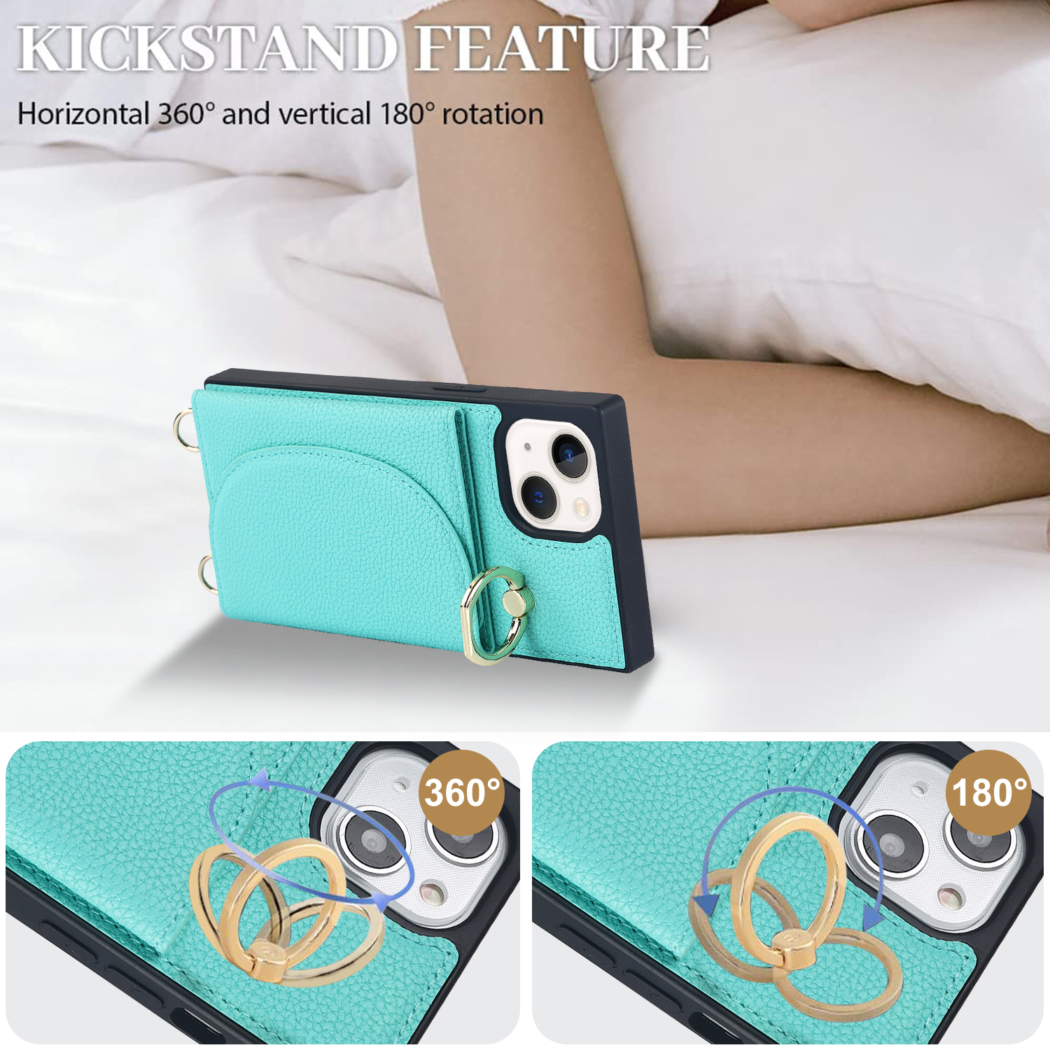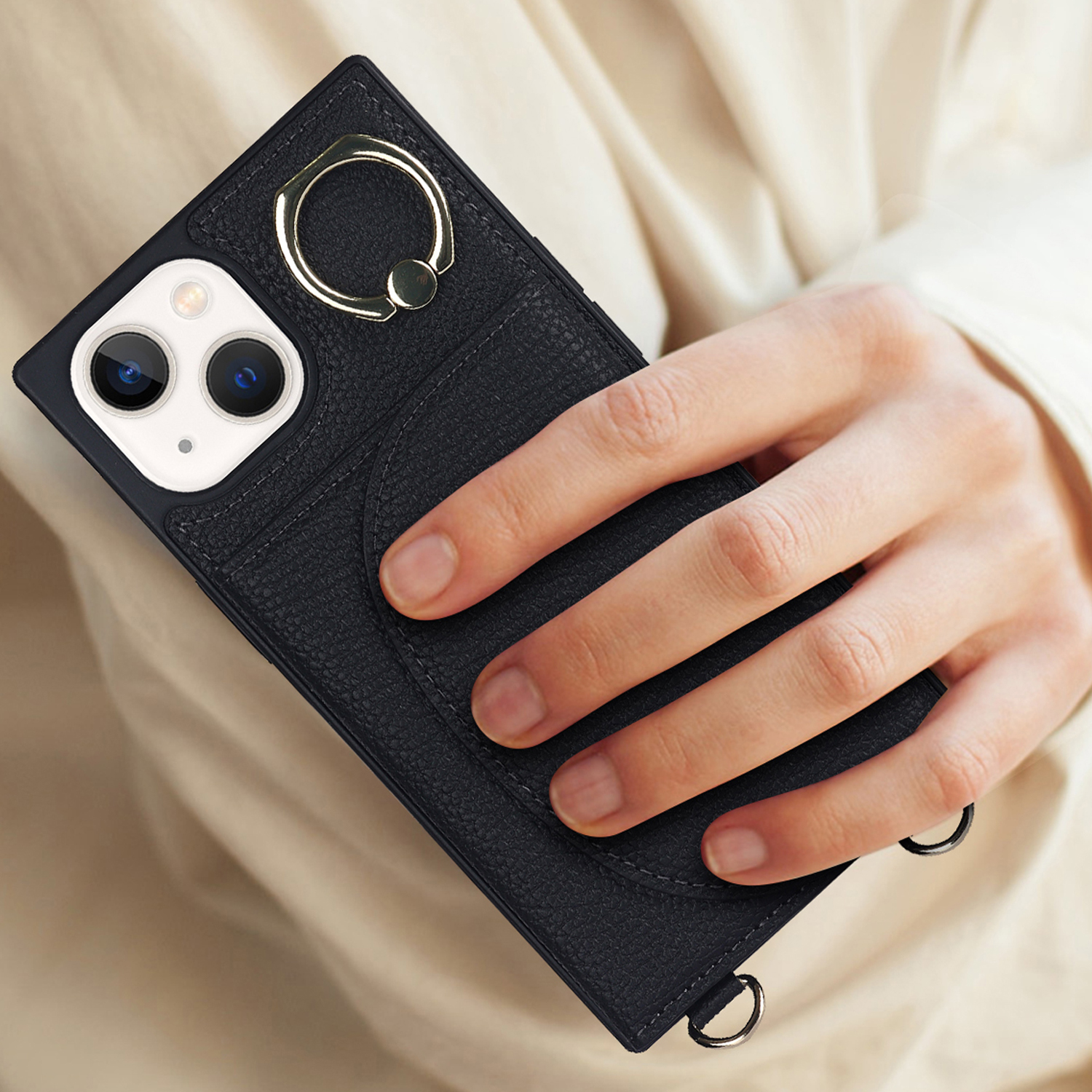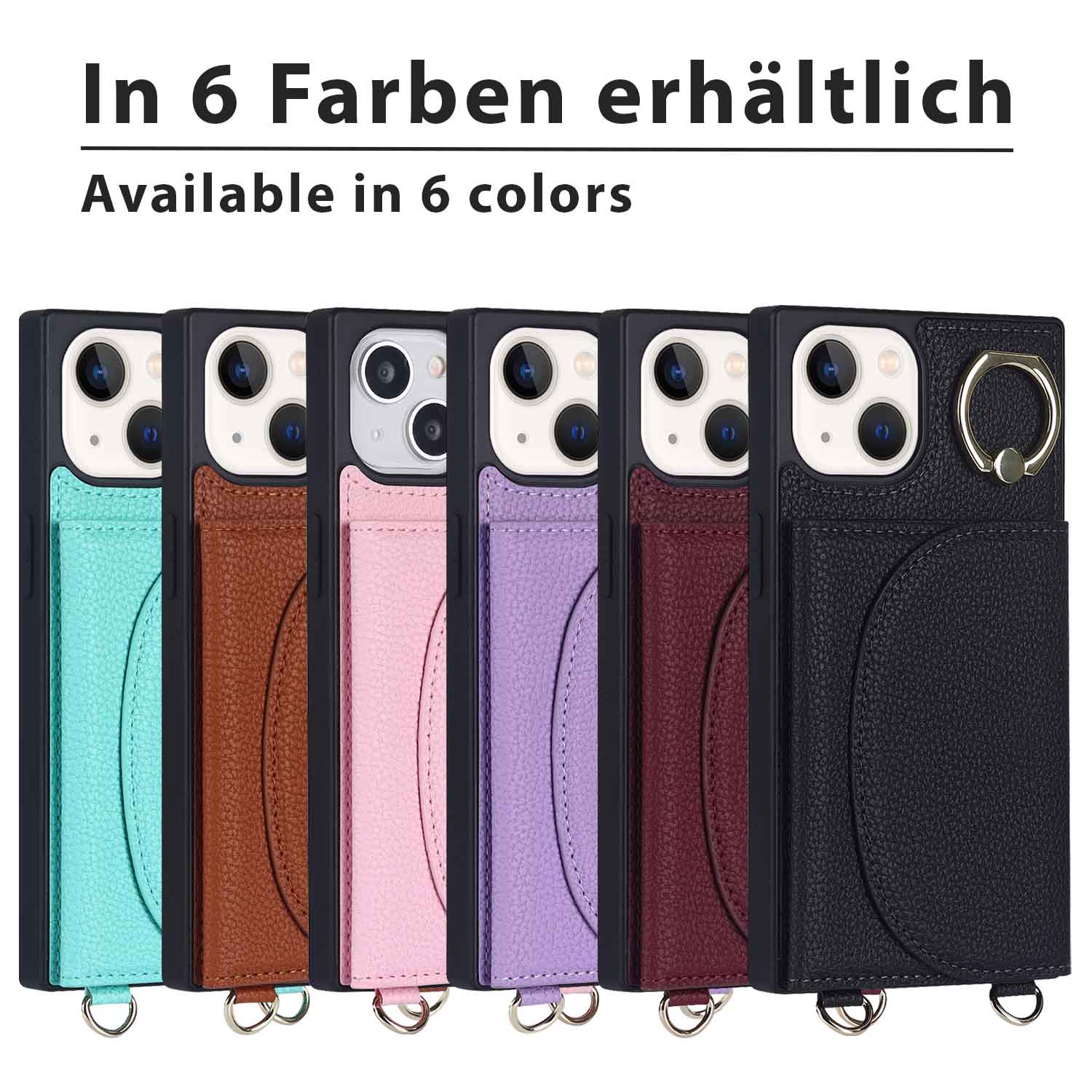 STYLISCH & PRAKTISCH - Mit dieser stylischen Handyhülle mit Band zum Umhängen haben Sie immer beide Hände frei. Auf der Rückseite befindet sich zusätzlich ein verstellbarer Ring, umso die Tasche noch sicherer halten zu können.