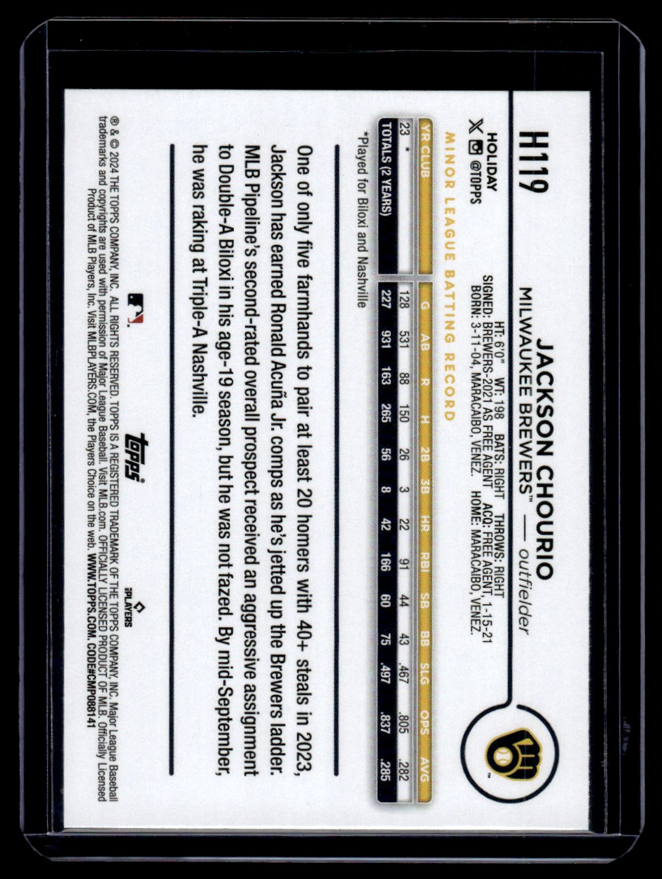 2024 Topps Holiday Jackson Chourio RC Milwaukee Brewers #H119