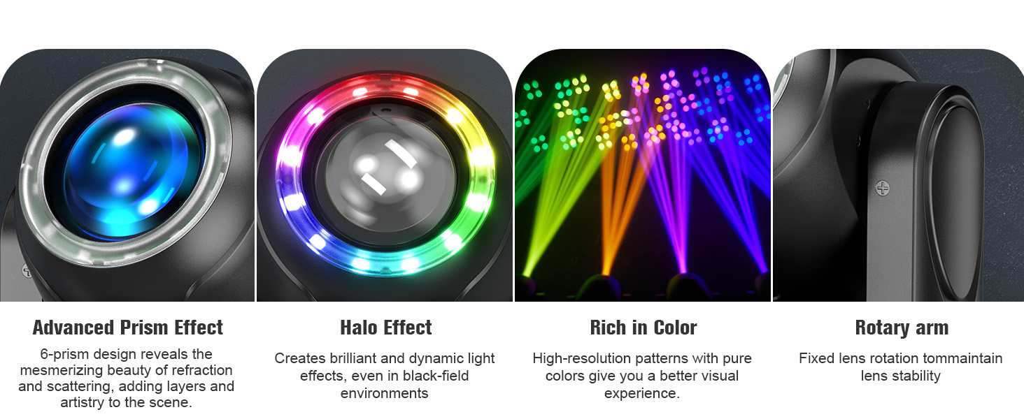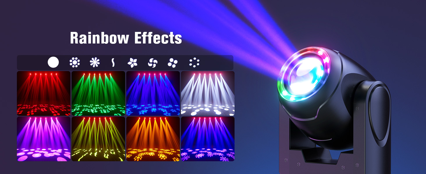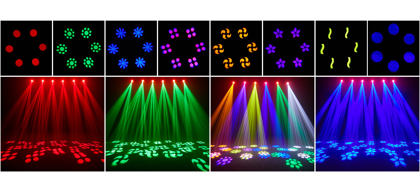 6 graphic gobos, 2 white light gobos and 7 colors + white light color wheel to meet the needs of different scenes.