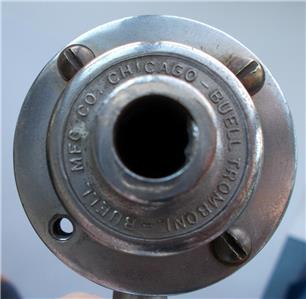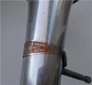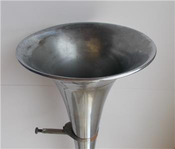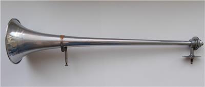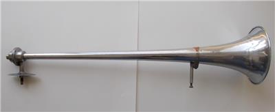 Vintage 30" BUELL Trombone air horn with mounting brackets. Horn diameter 7". Non-magnetic. Not sure if it is polished stainless or chrome plated bronze.