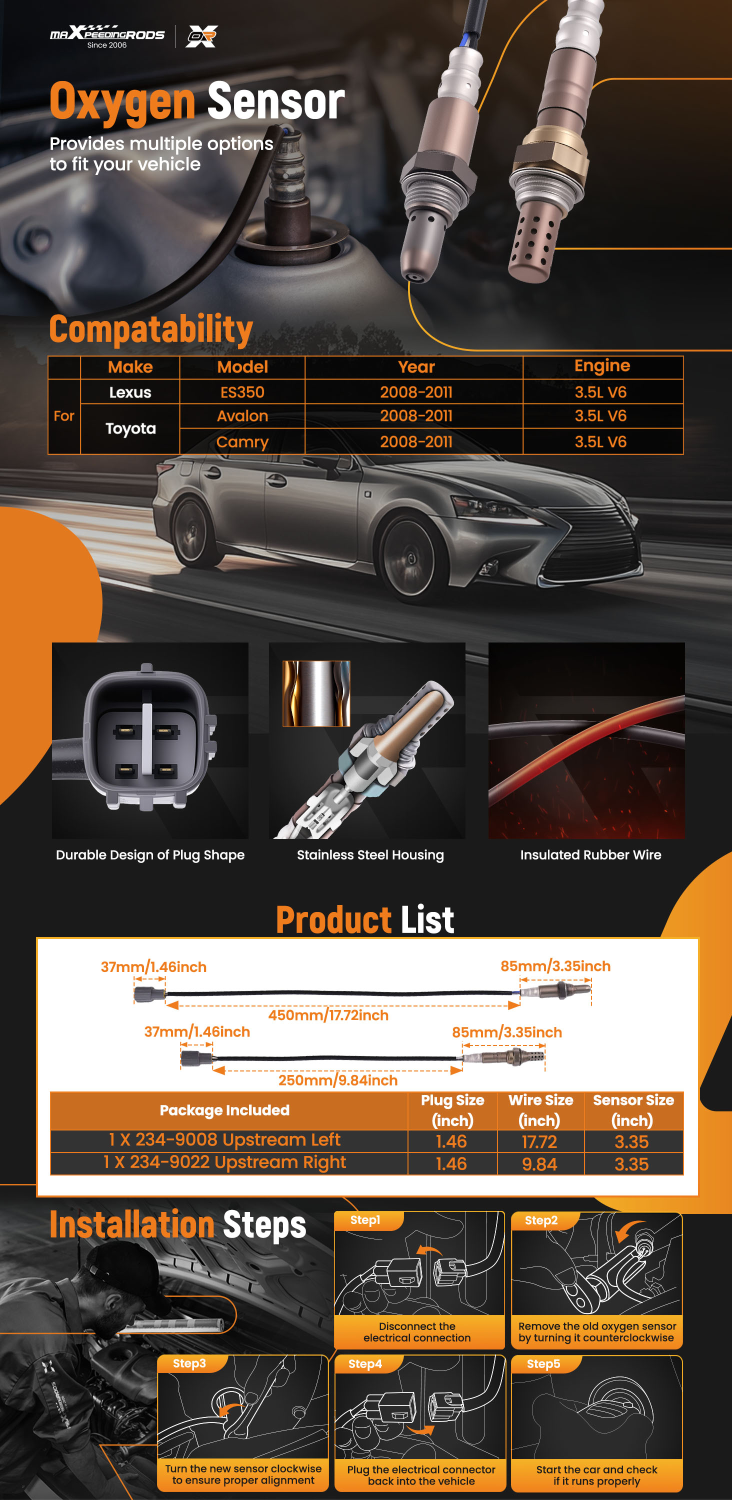 【Easy Installation】The oxygen sensor threads have been pre-coated with anti-seize lubricant. Install directly to save your installation time. Equipped with cover protection to prevent lubricant from being affected during transportation.