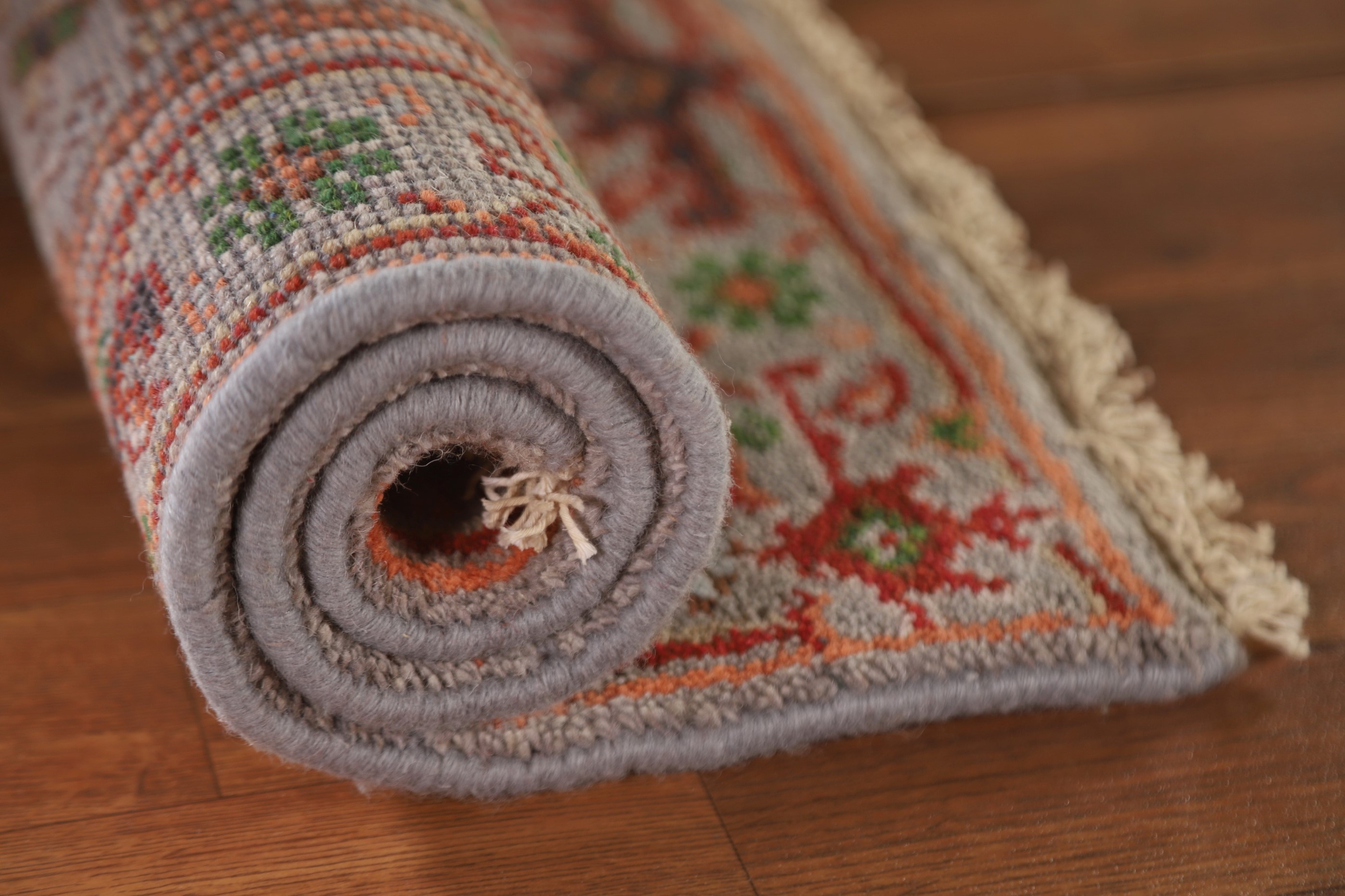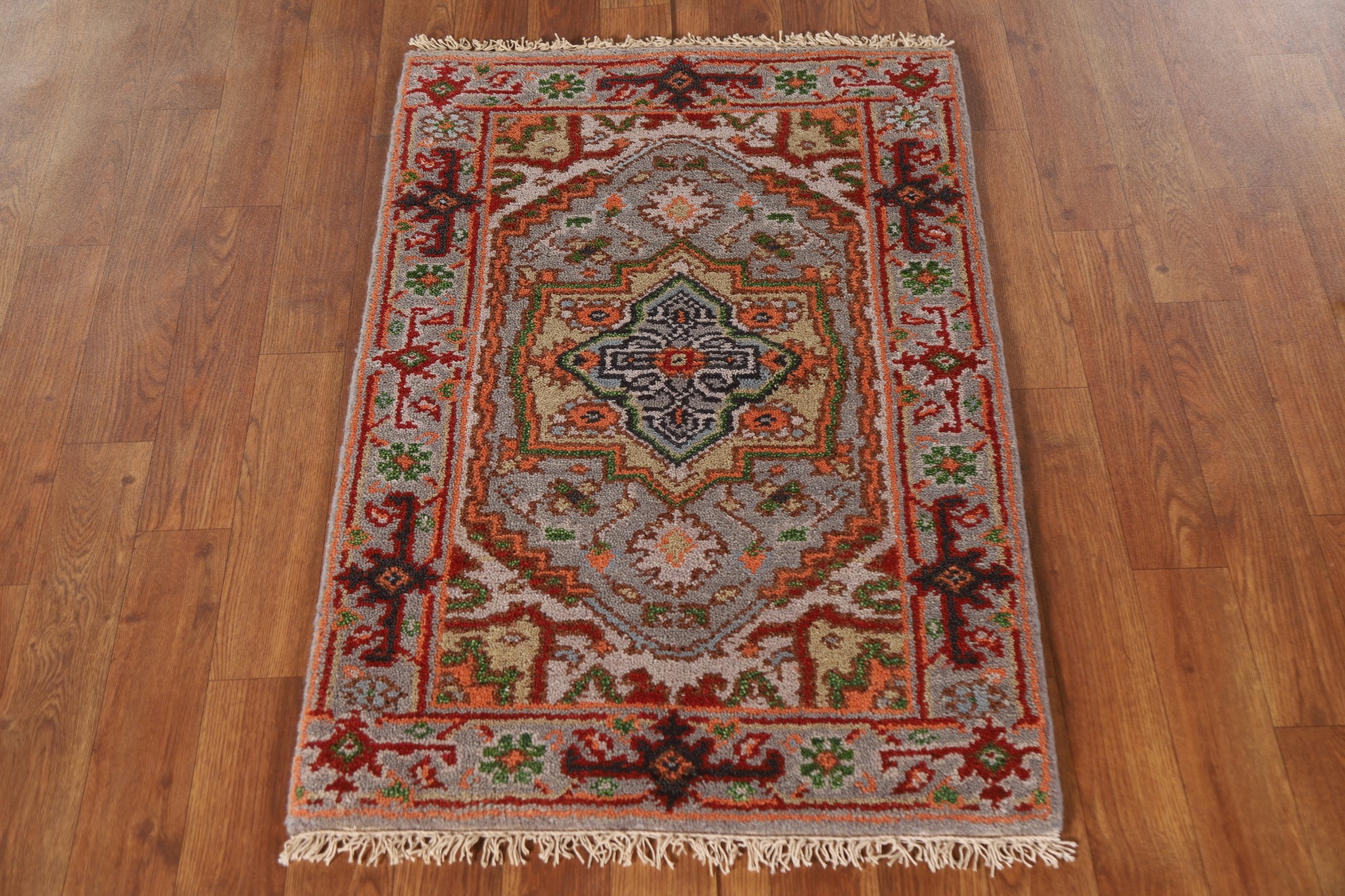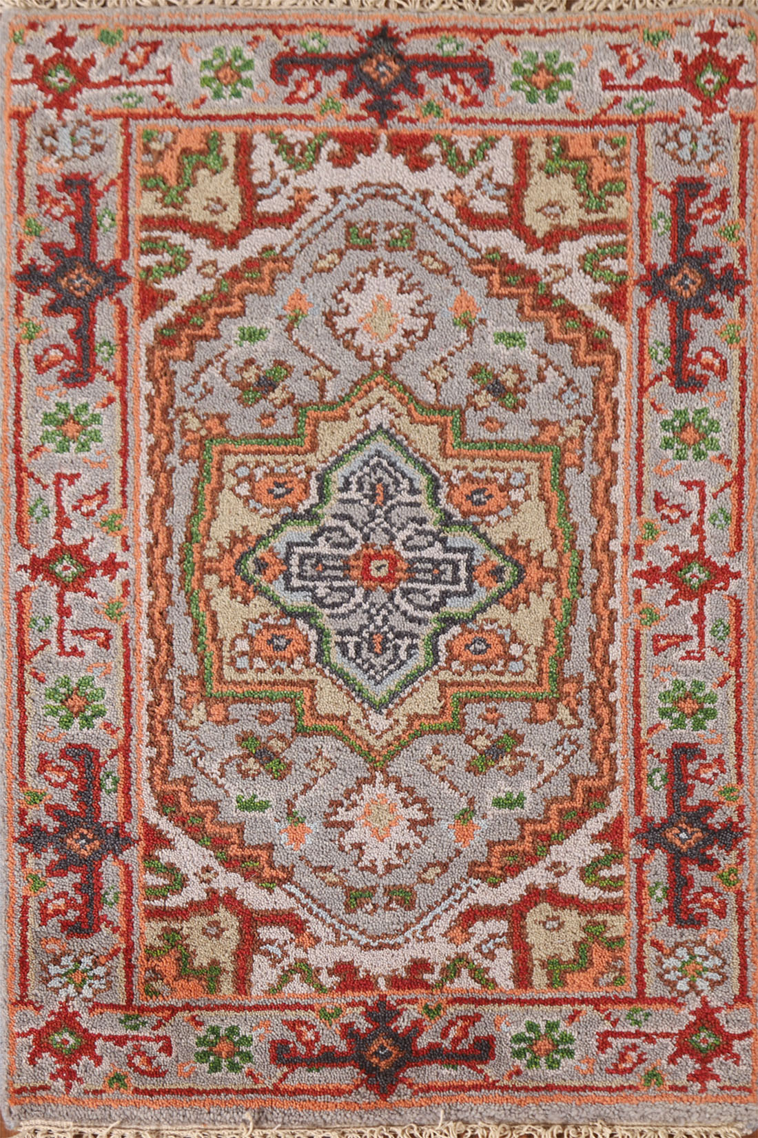 Hand-Knotted Oriental Gray Wool Indian Rug 2x3 Ft Traditional Accent Carpet