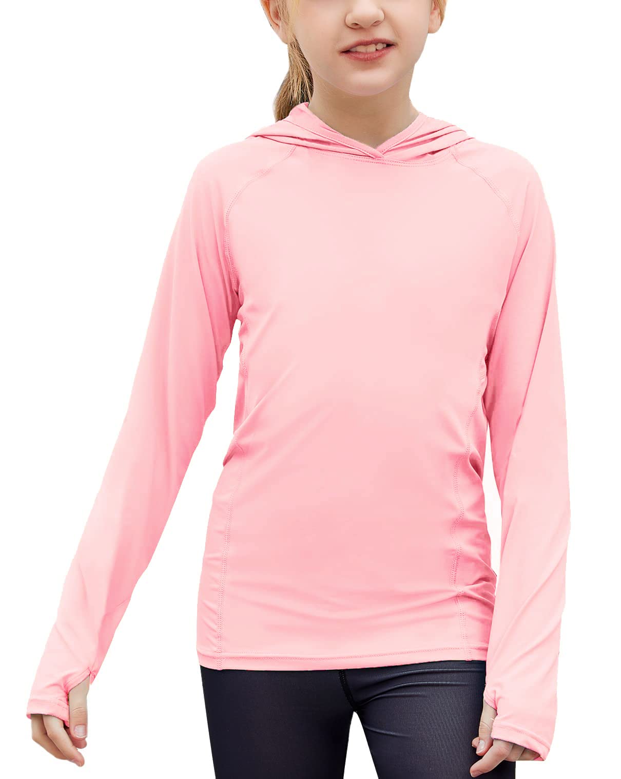 Zaclotre Kids UPF50+ Sun Shirt Athletic Hoodie with Thumbholes Pink 11-12 Yrs