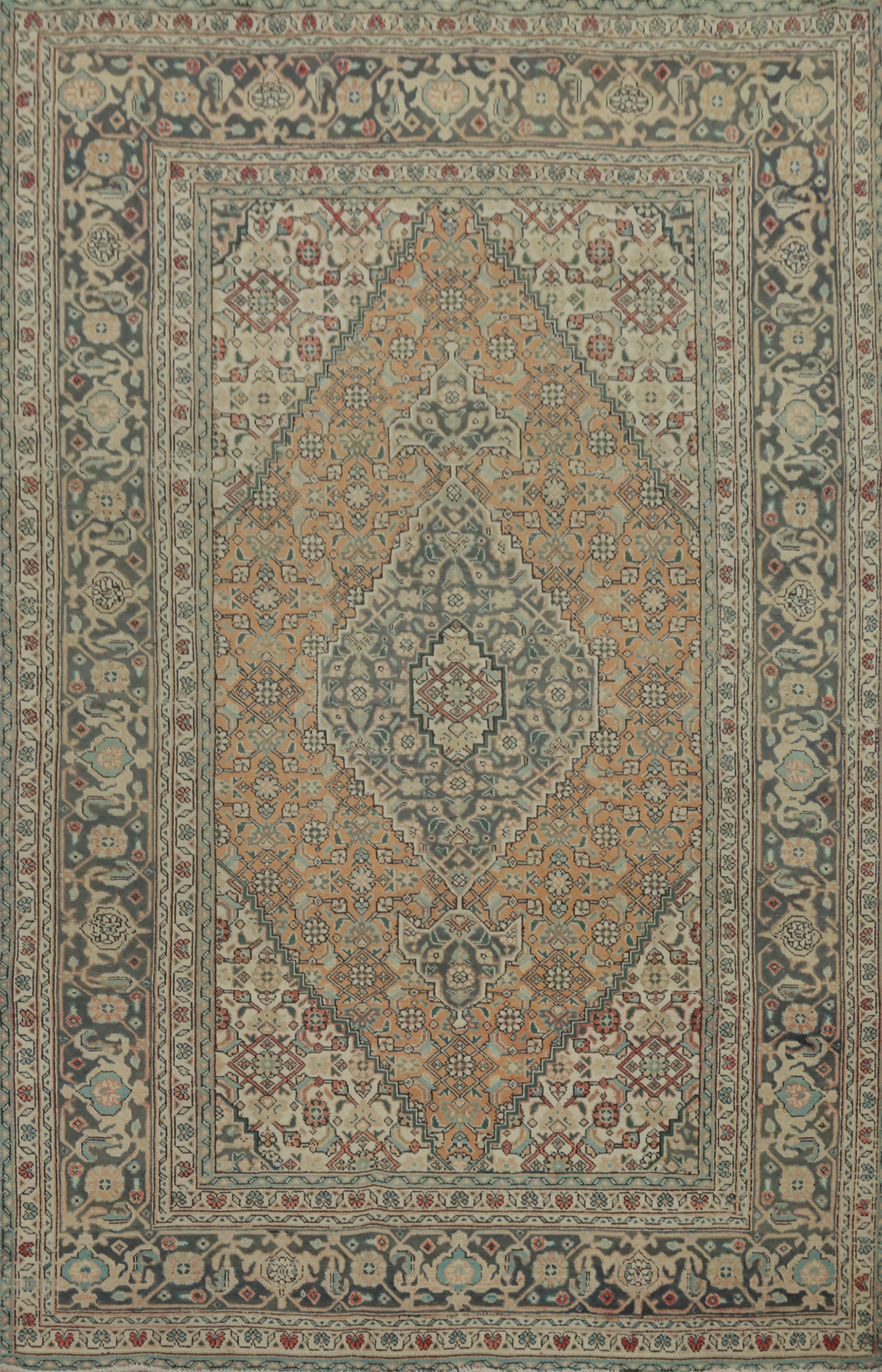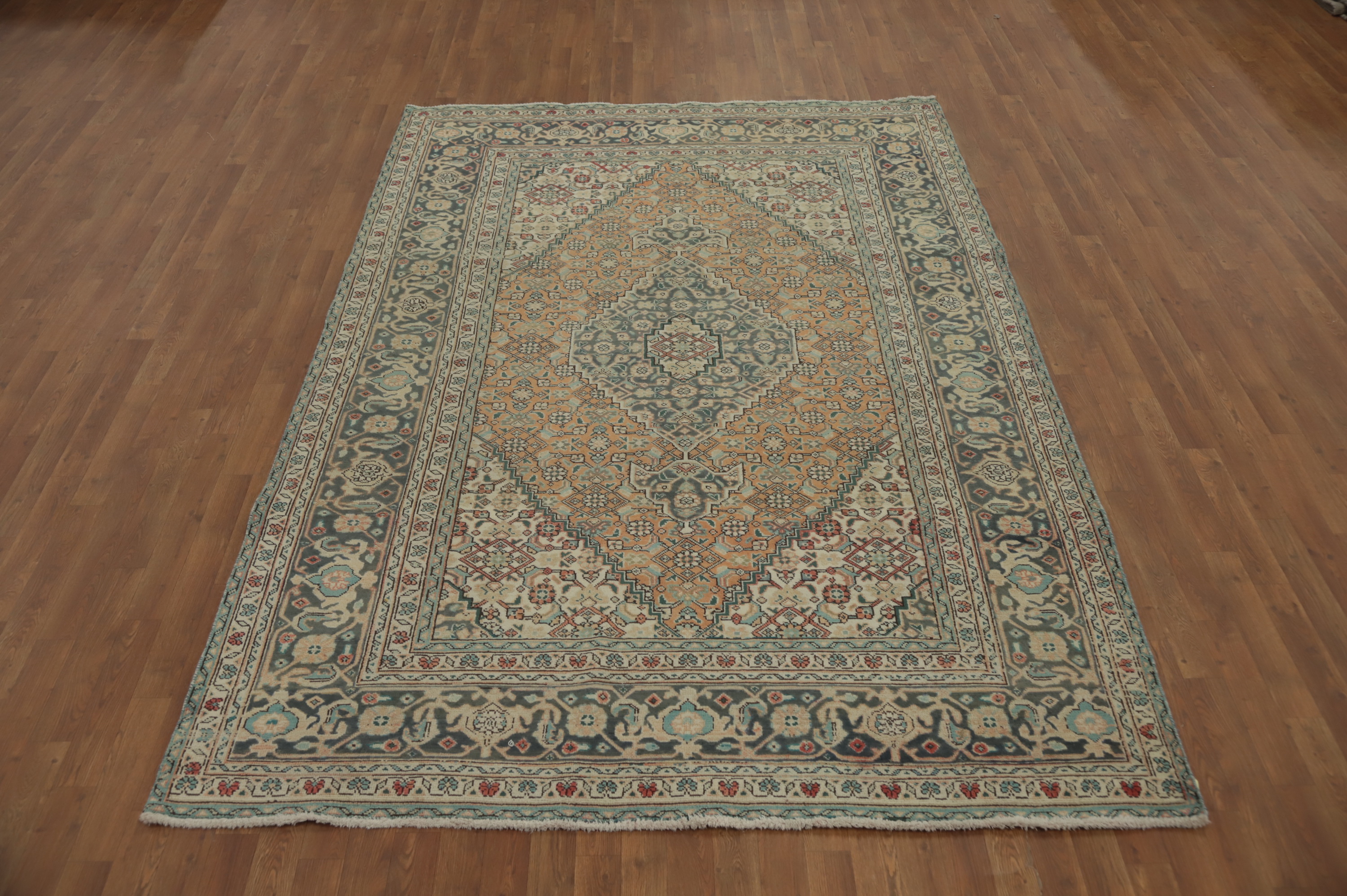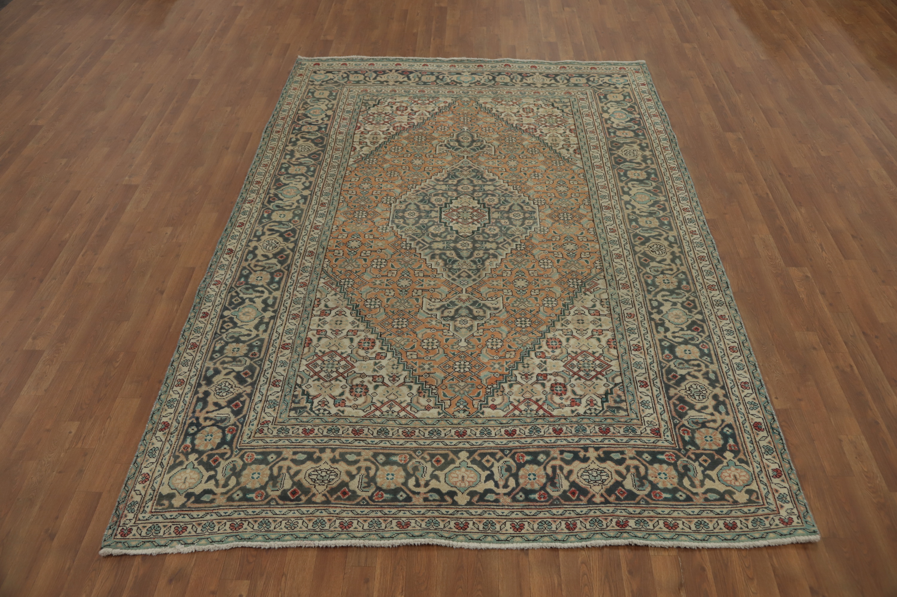 Orange Vegetable Dye Traditional Geometric Area Rug 7x10 ft Hand-knotted Wool
