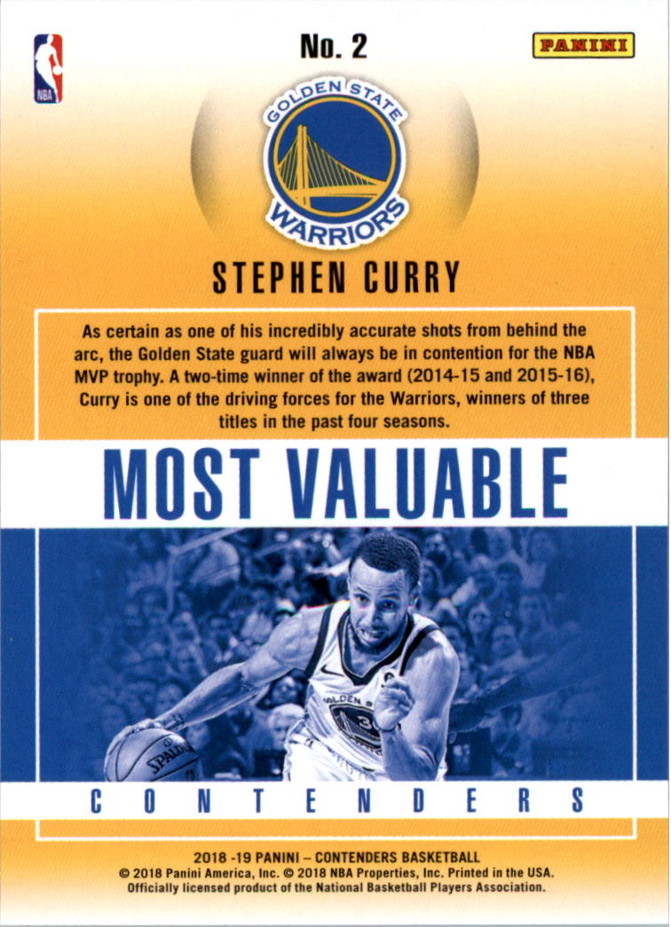 2018-19 Panini Contenders Most Valuable Contenders #2 Stephen Curry - BSK