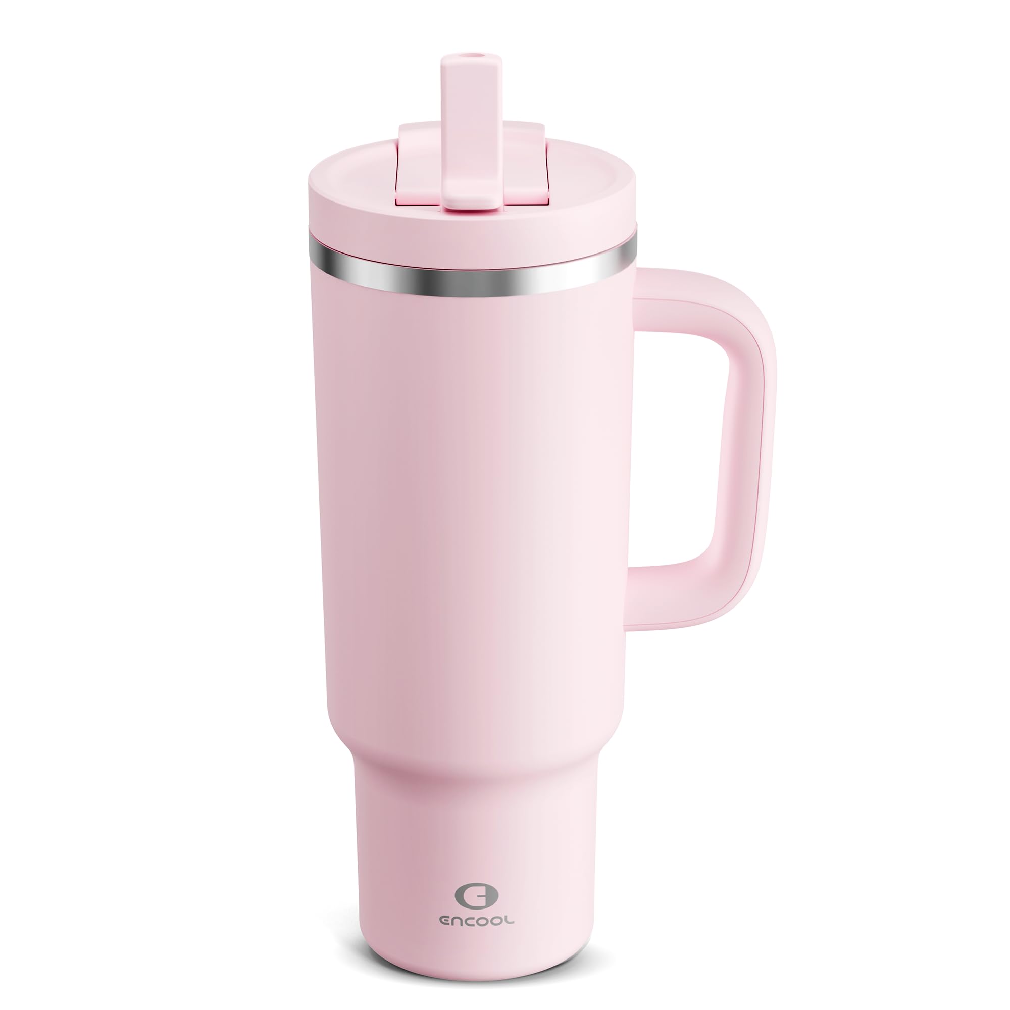 ENCOOL 40 oz Tumbler with Handle and Straw: Stainless Steel Insulated Tumbler Keeps Cold for 24 Hours, Leakproof Travel Cup Fits in Cup Holder and BPA-Free, Cotton Candy