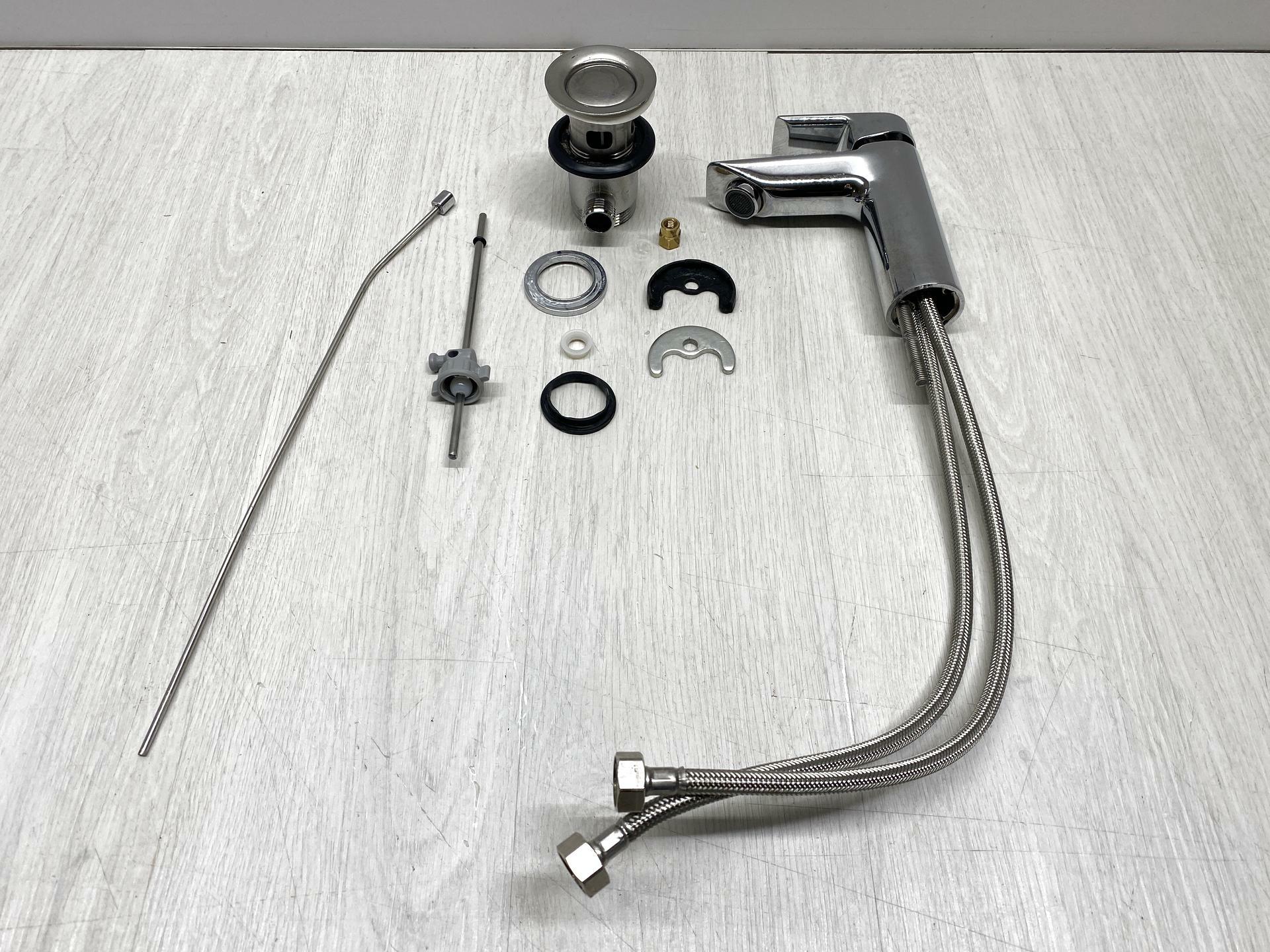 Robinet de lavabo à levier unique avec bec fixe, perlateur M24x1 avec un débit maximal de 5 l/min.
