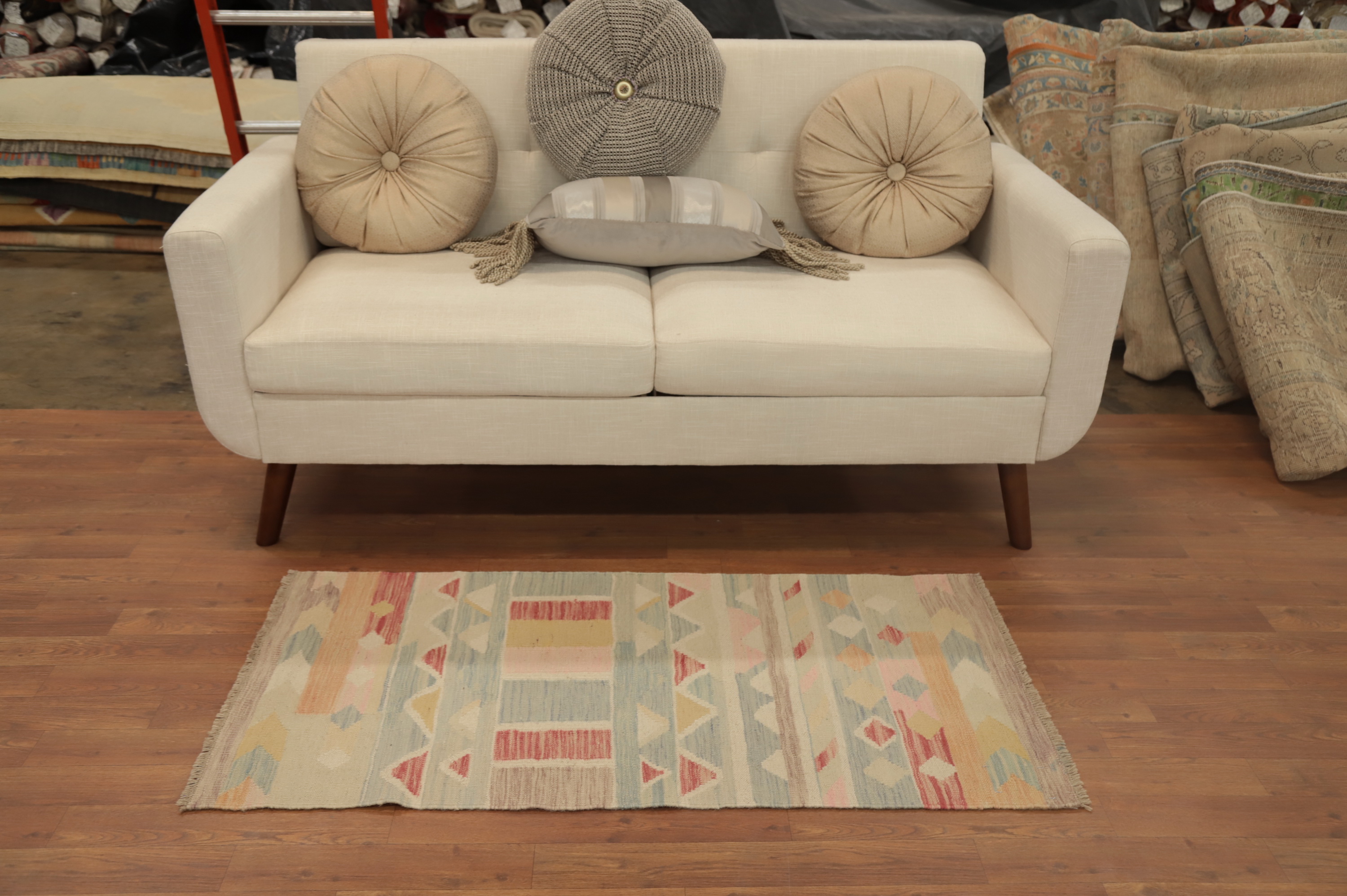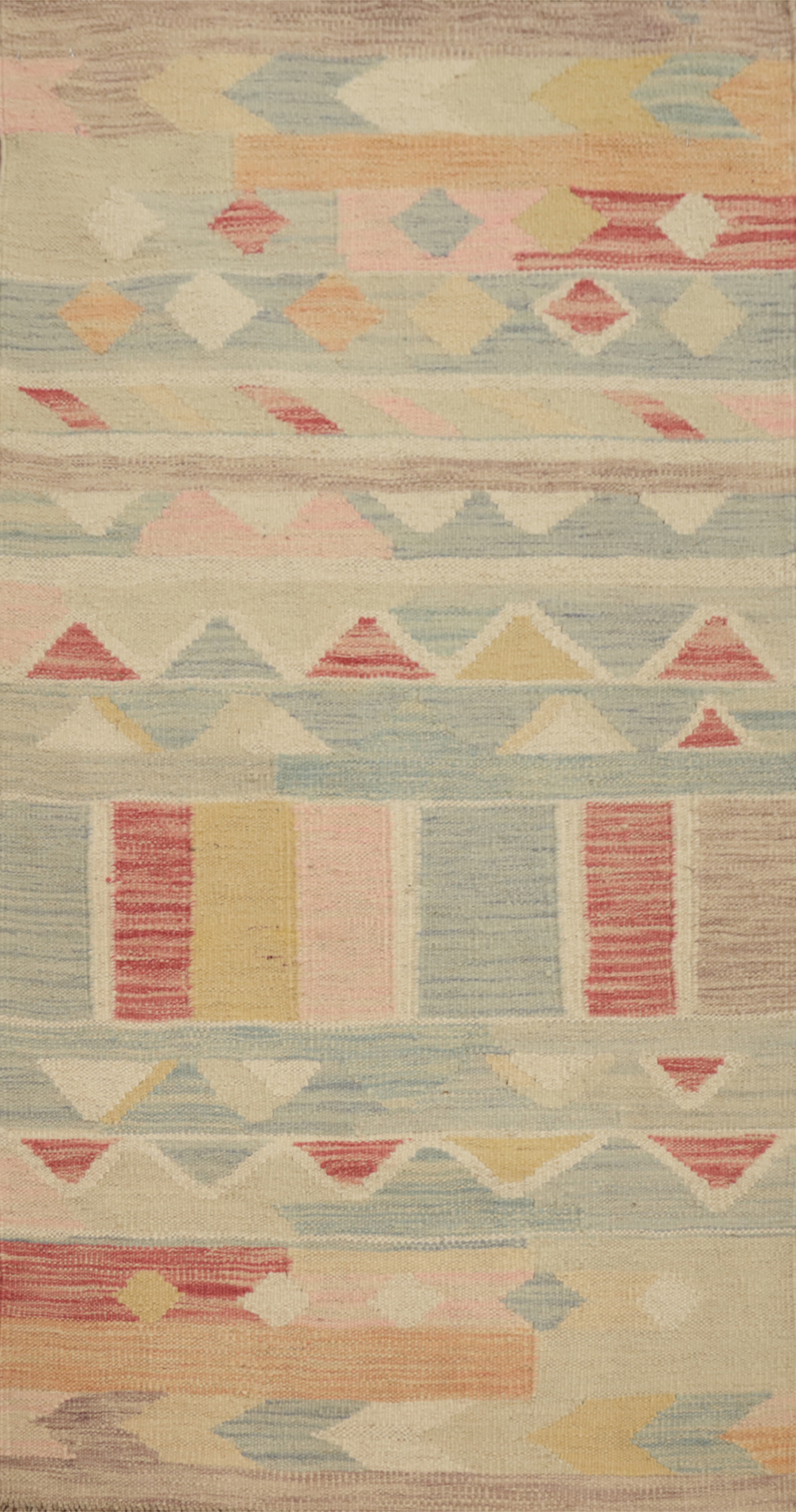 Nomadic Muted Pastel Colored Kilim Reversible Rug 2x4 Flat-weave Oriental Carpet