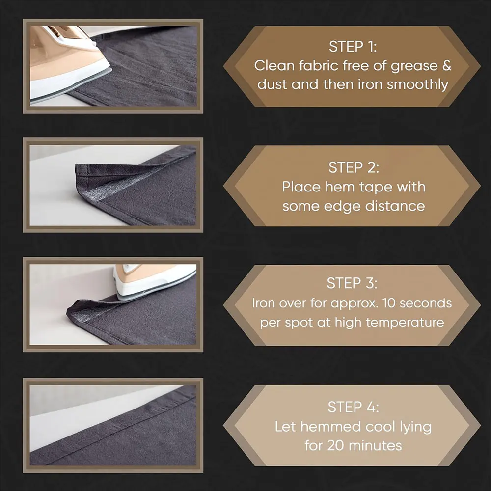 - No sewing required: iron-on, double-sided adhesive tape is made for easily and permanently hemming garments and home decor without any sewing