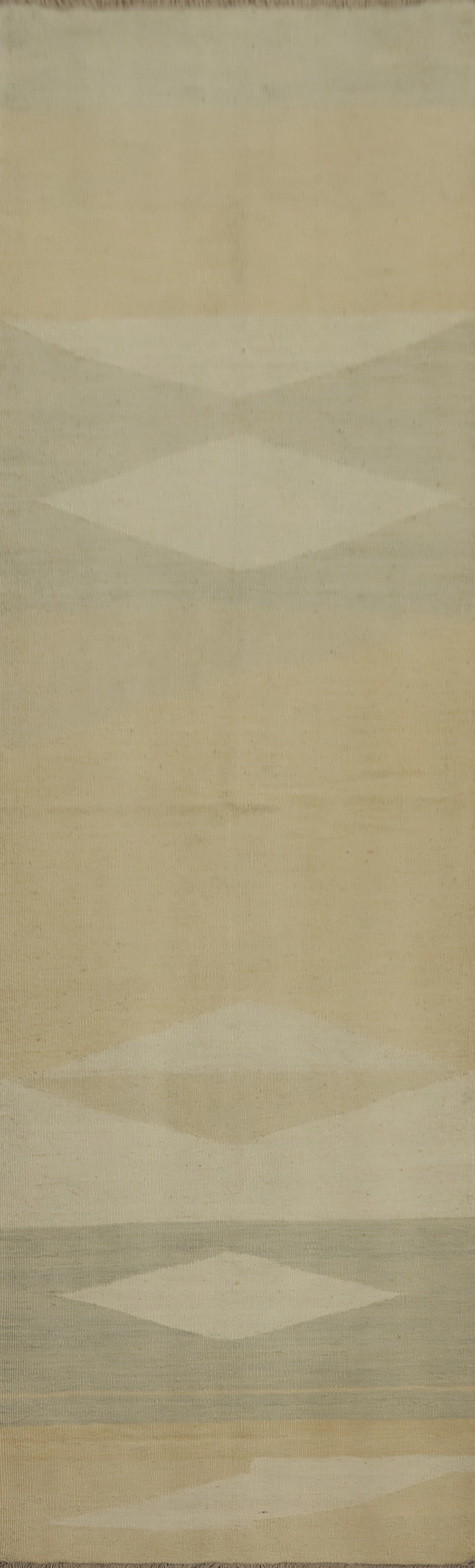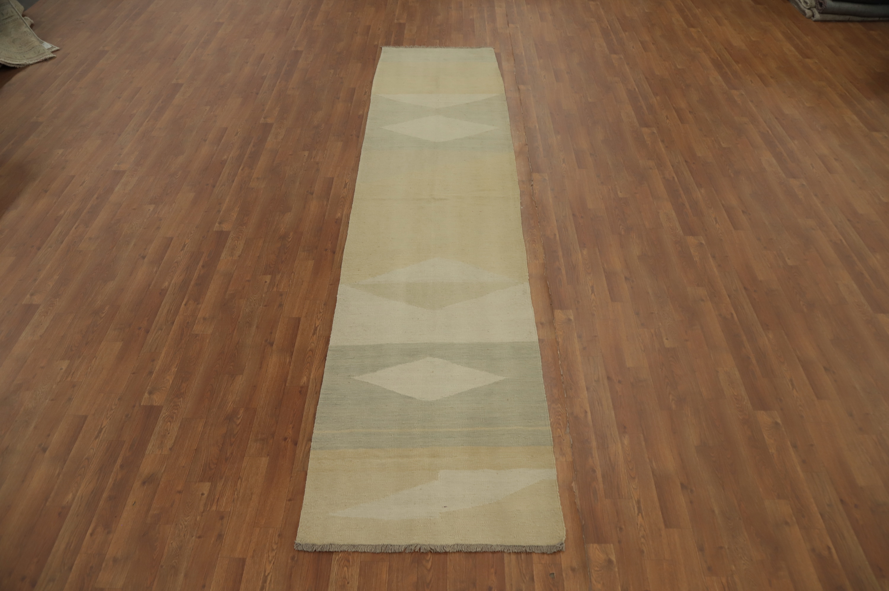 Modern Muted Pastel Kilim Runner Rug 3x12 in Abstract Design Reversible Carpet