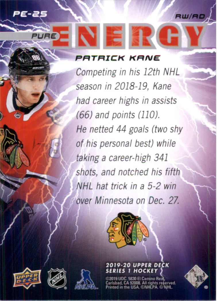 2019-20 Upper Deck Pure Energy #PE25 Patrick Kane - HKY