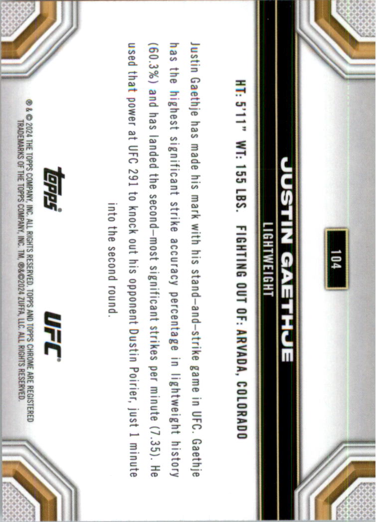 2024 Topps Chrome UFC Negative Refractors #104 Justin Gaethje - MMA