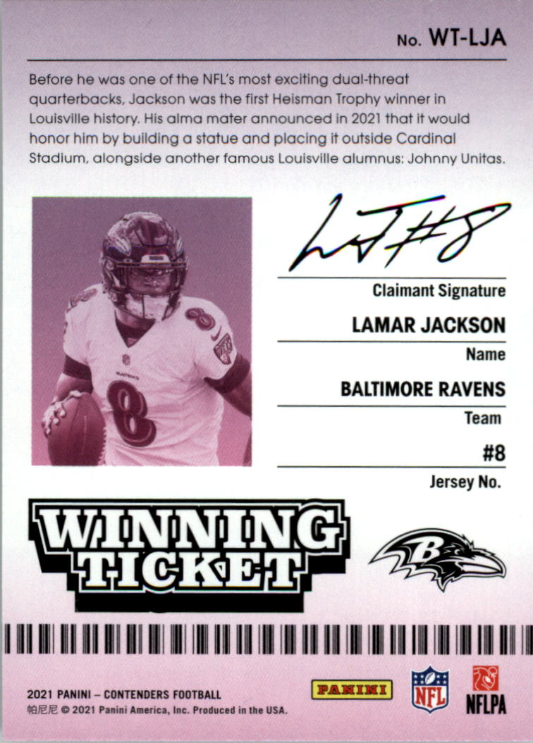 2021 Panini Contenders Winning Ticket #3 Lamar Jackson - FB