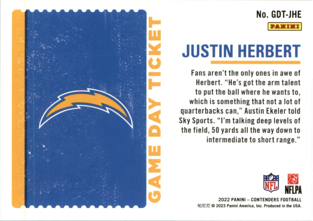 2022 Panini Contenders Game Day Ticket #18 Justin Herbert - FB