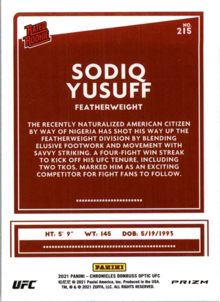 2021 Donruss Optic Rated Rookies UFC Silver #215 Sodiq Yusuff - UFC