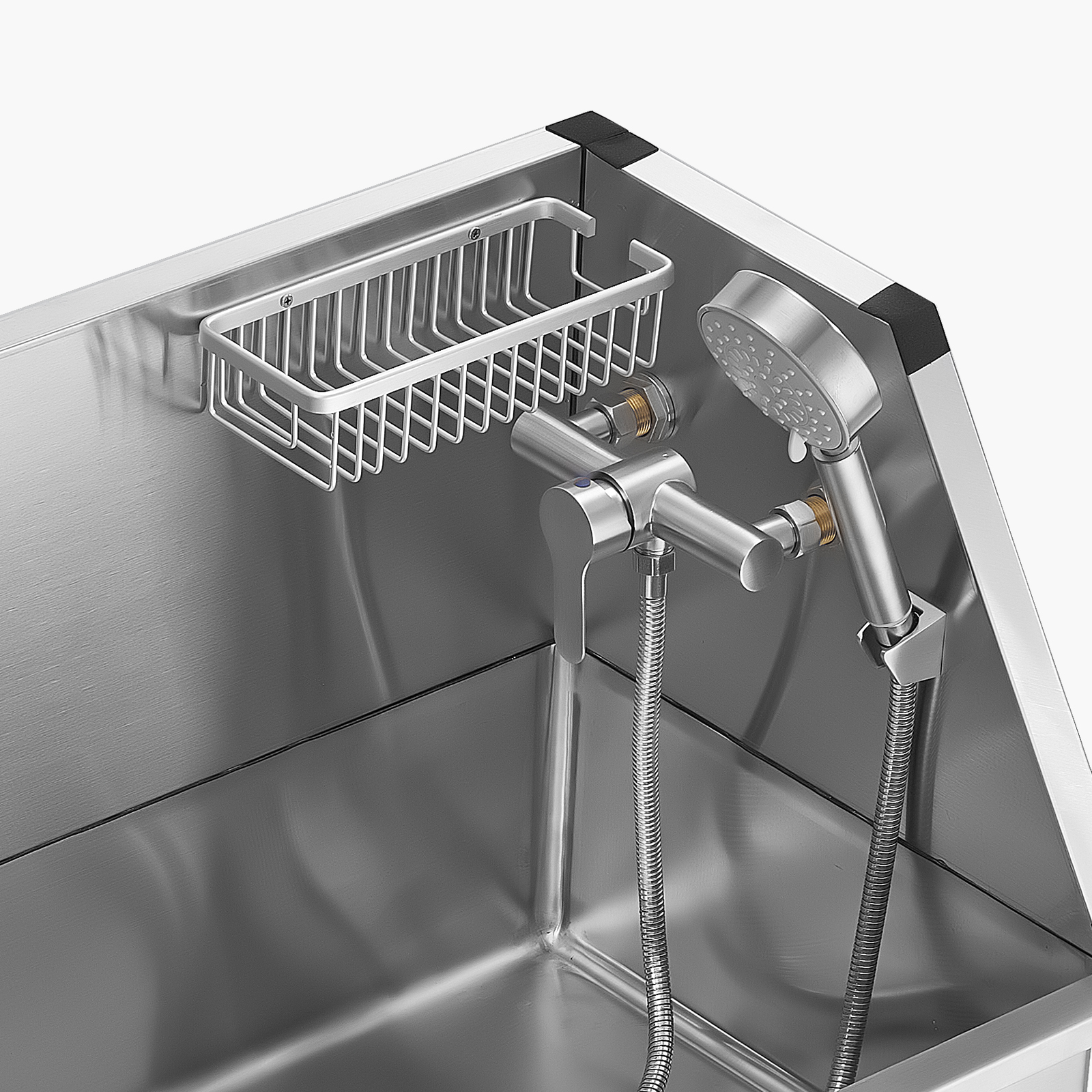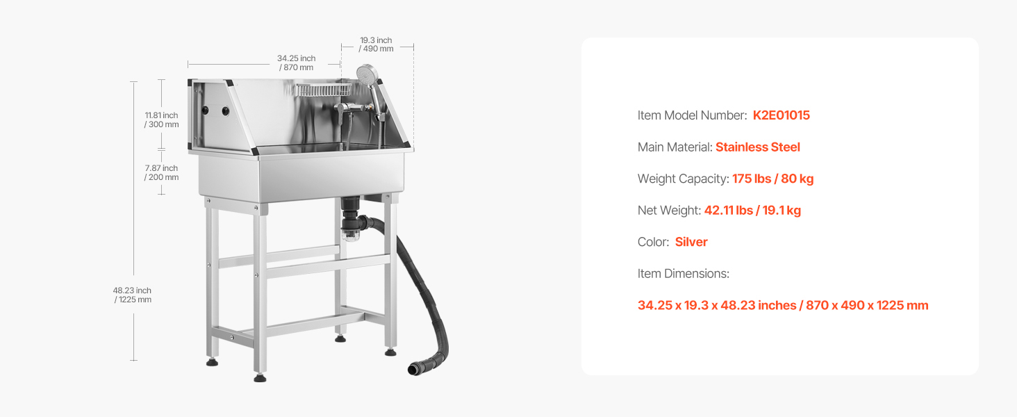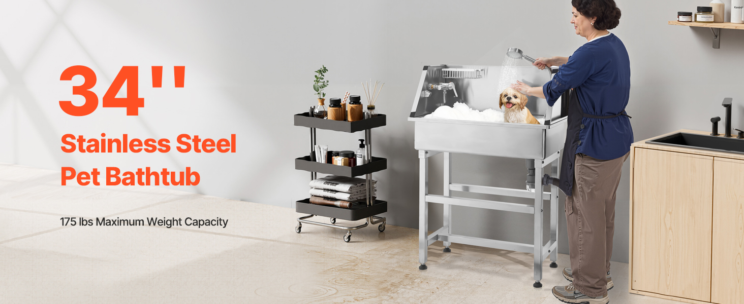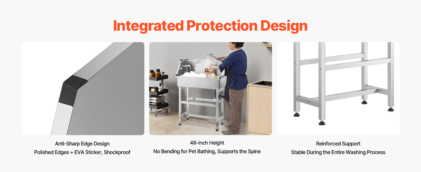 With seamless one-piece welding and built-in sealing strips, this tub ensures no water leakage. Made from stainless steel, it is rust-resistant and sturdy, maintaining its new look over time. The tub features smooth edges, ensuring security for both pets and users during bathing.