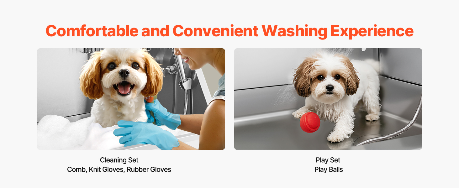- More Comfortable Grooming: The dog grooming tub is featuring hot and cold faucets and three water pressure settings, along with an aluminum alloy soap holder for storing cleaning supplies, making pet grooming more convenient