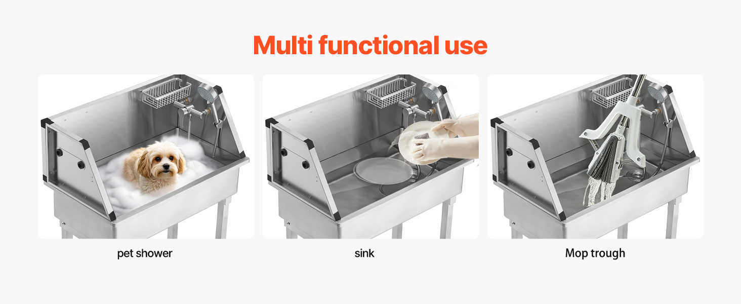- Integrated Design: This compact stainless steel pet bath tub is ideal for small pets' showering and cleaning needs. It saves space while being made of high-quality, durable stainless steel, making it easy for you to handle pet bathing with ease