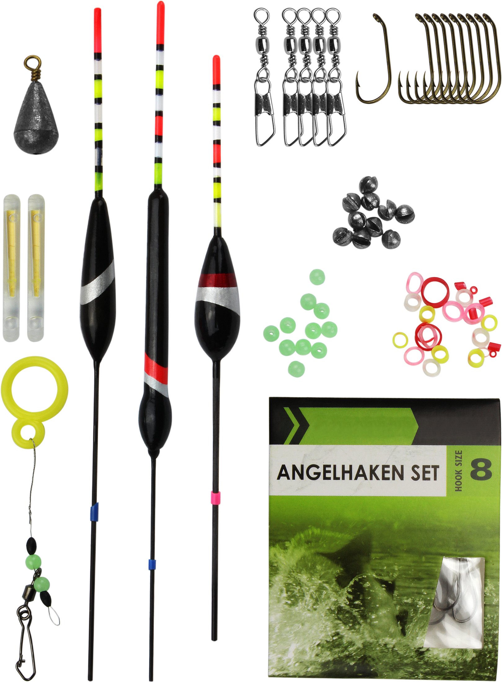 Friedfisch Montage Starter-Set mit Posen Angelhaken Gewichten und Schnurstoppern