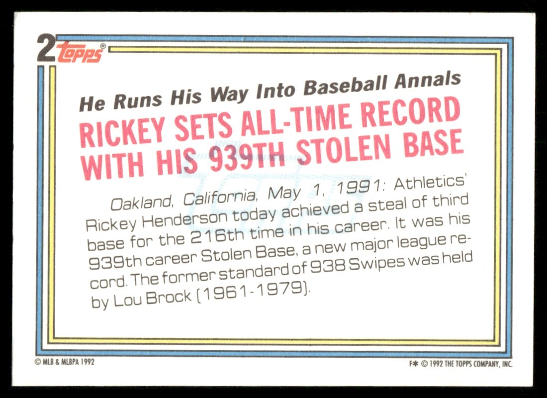 1992 Topps Rickey Henderson Oakland Athletics #2