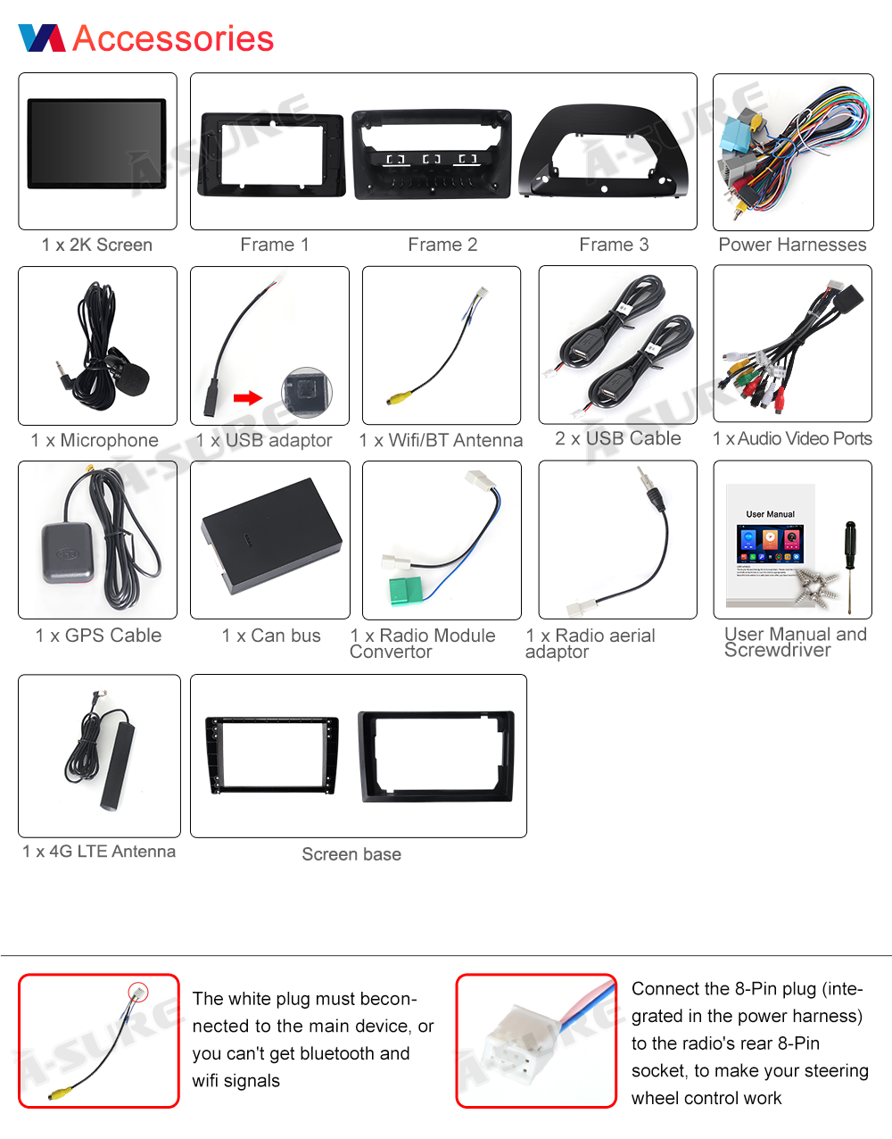 - Compatible with Steering Wheel Control: Steering wheel controls allow the driver to easily operate the vehicle's multimedia system, telephone, navigation, and other functions via buttons on the steering wheel or the touch screen while driving without having to distract their attention from touching other locations.