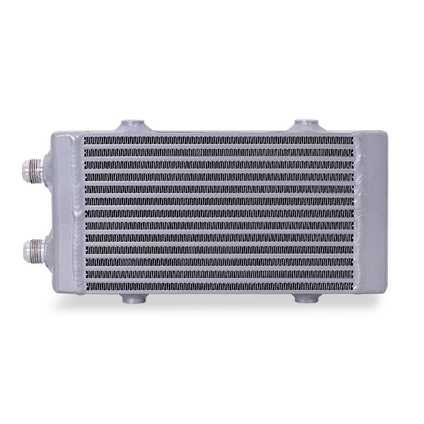 As anyone who's spent some time on the track will tell you, one of the most important things to keep under control while pushing the limits of your vehicle is oil temperature. Oil that gets too hot will lose its viscosity, which is the very characteristic that makes it thick, slippery, and useful for lubrication. Adding a Mishimoto race oil cooler to your ride will ensure that your oil stays cool enough to do its job, extending the life of the high-wear components within your block and letting you focus not on keeping things cool, but taking home the checkered flag. Available in your choice of sleek silver or stealth black, this particular oil cooler features a dual pass core - oil enters one side, travels around the core, and exits again on the same side. Ideal for tight situations, Mishimoto's small dual pass oil cooler will help keep temperatures in check while you shoot for the podium finish.