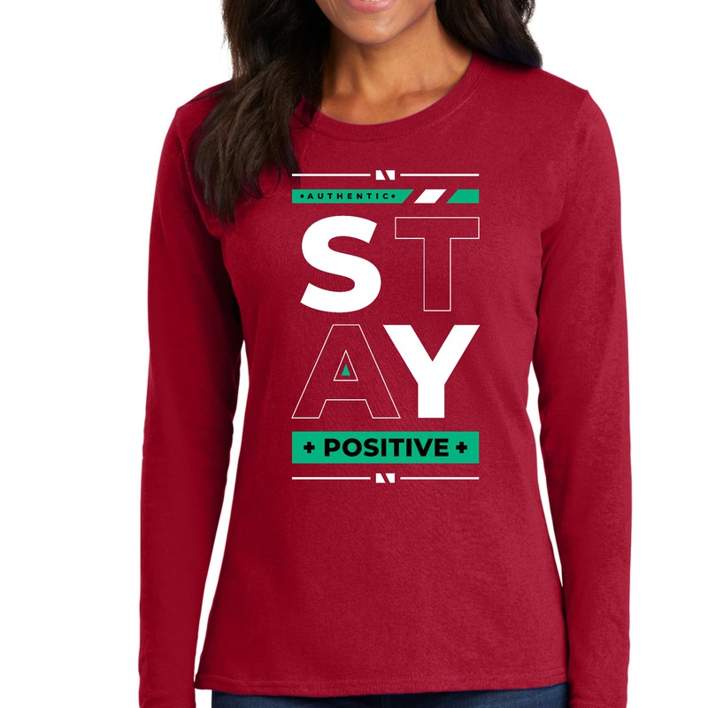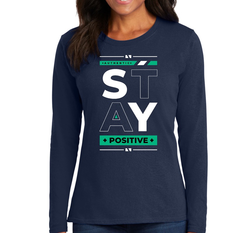 Womens Long Sleeve Graphic T-shirt - Stay Positive