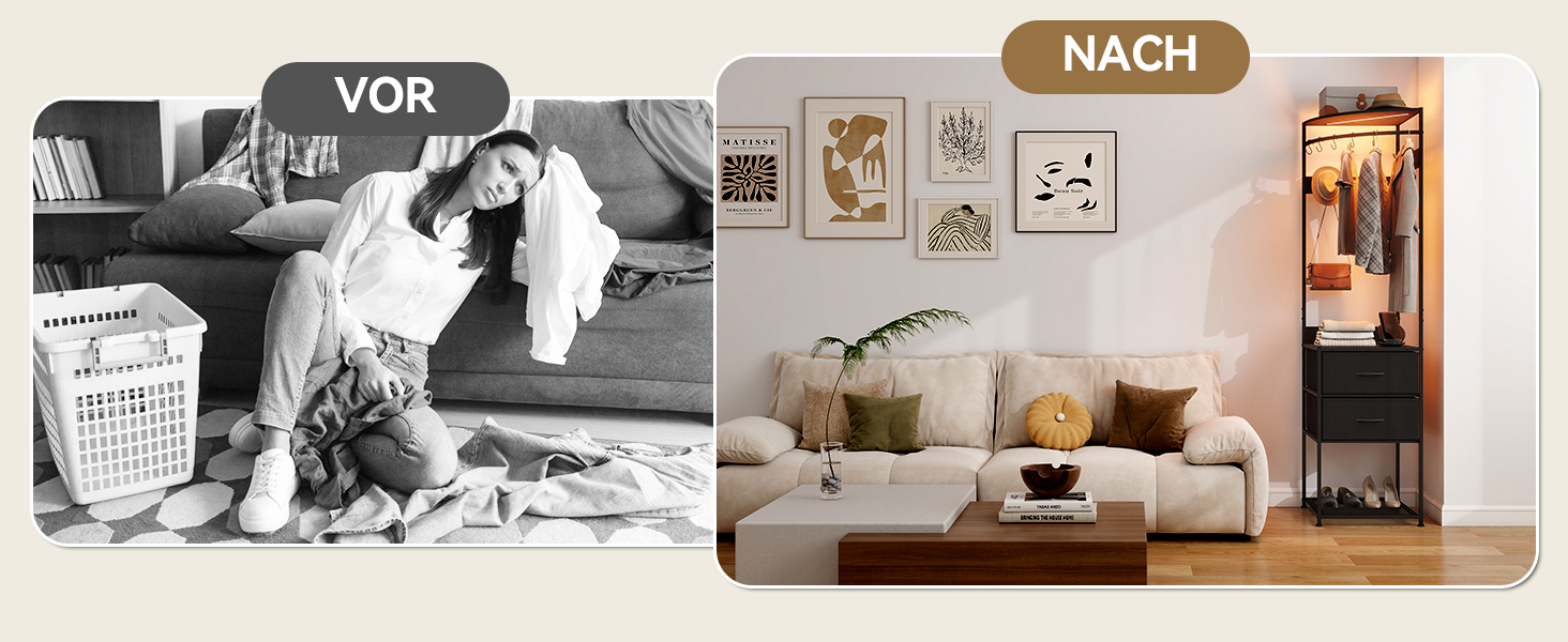 【Anwendbar auf mehrere Szenen】 Geeignet für Schlafzimmer, Wohnzimmer, Eingangshallen und andere Räume, zentrale Aufbewahrung von Kleidung, Schuhen, kleinen Alltagsgegenständen, hilft, den Raum von Unordnung zu befreien und leicht eine ordentliche und geordnete Wohnumgebung zu schaffen.