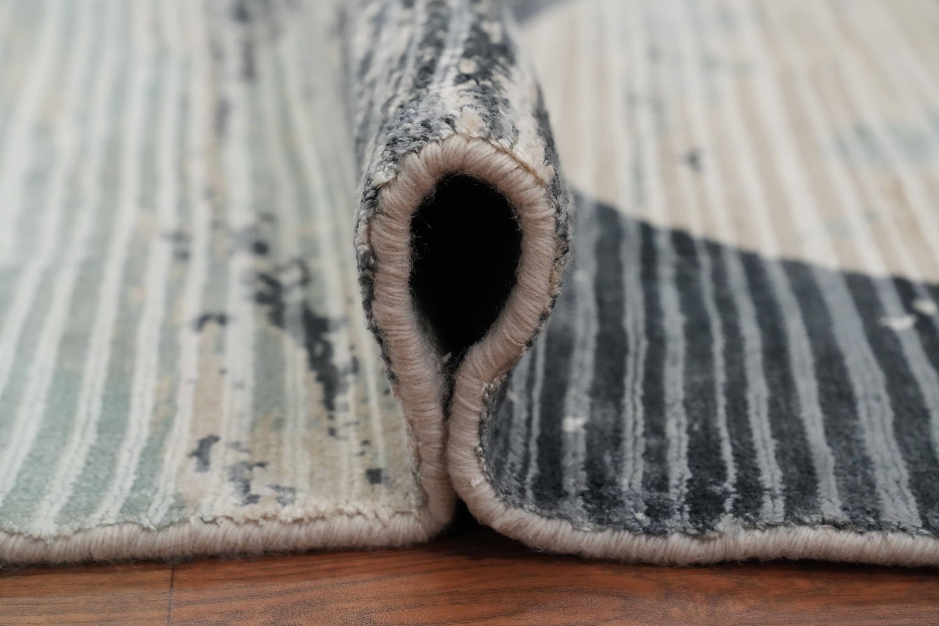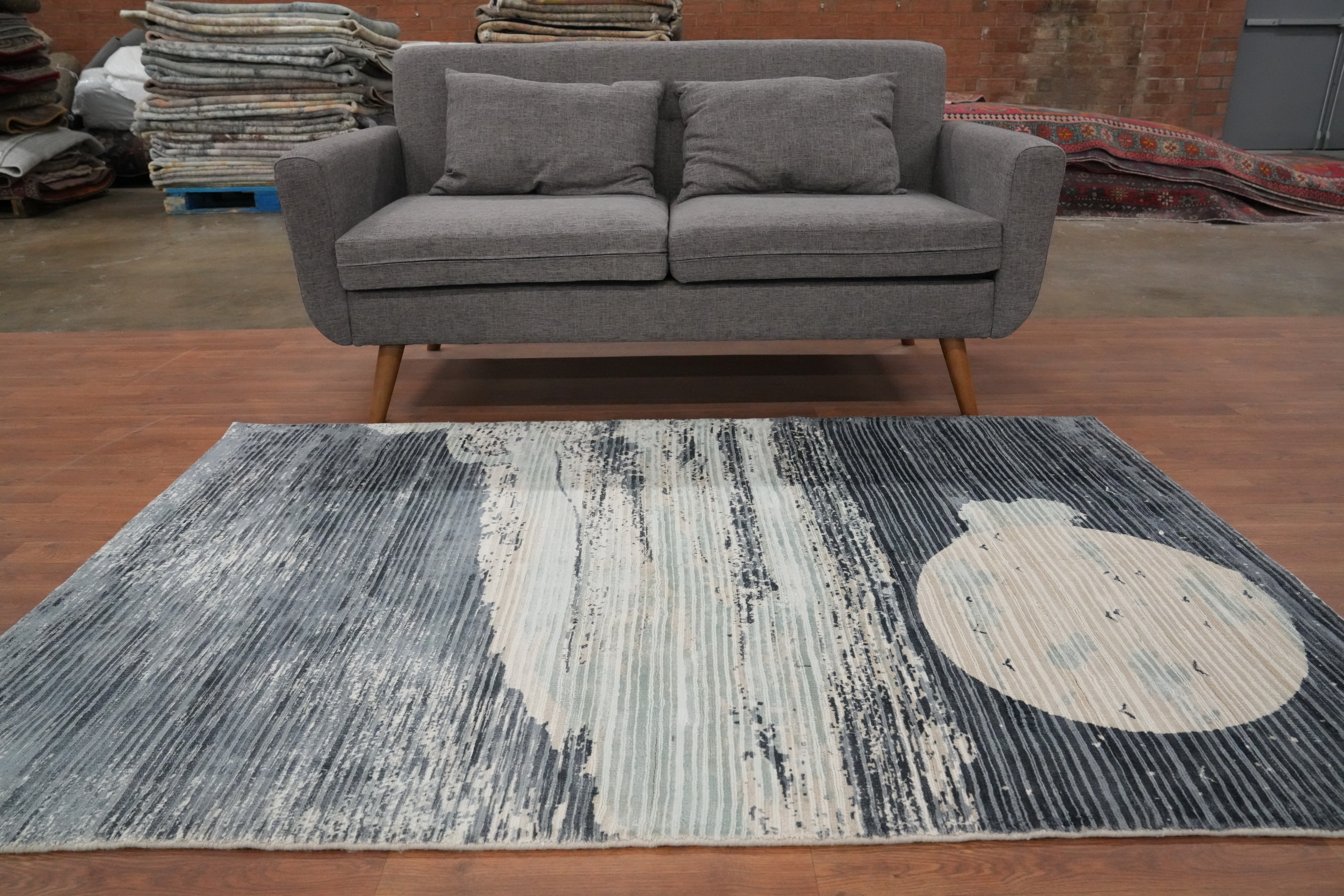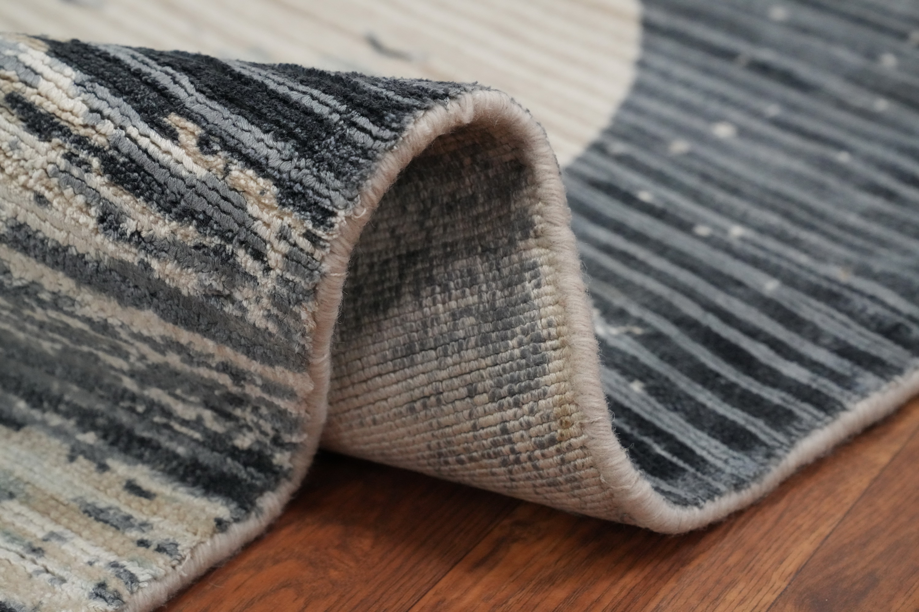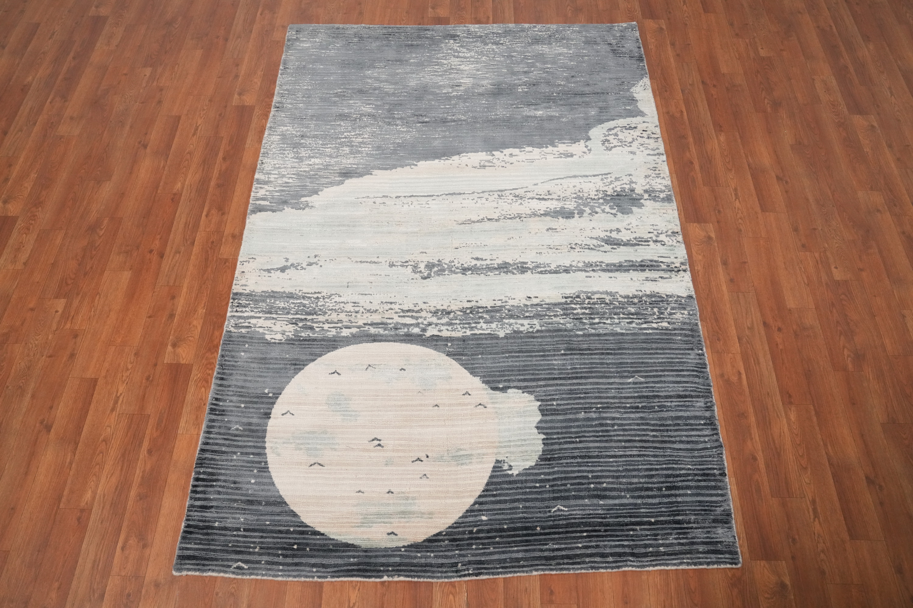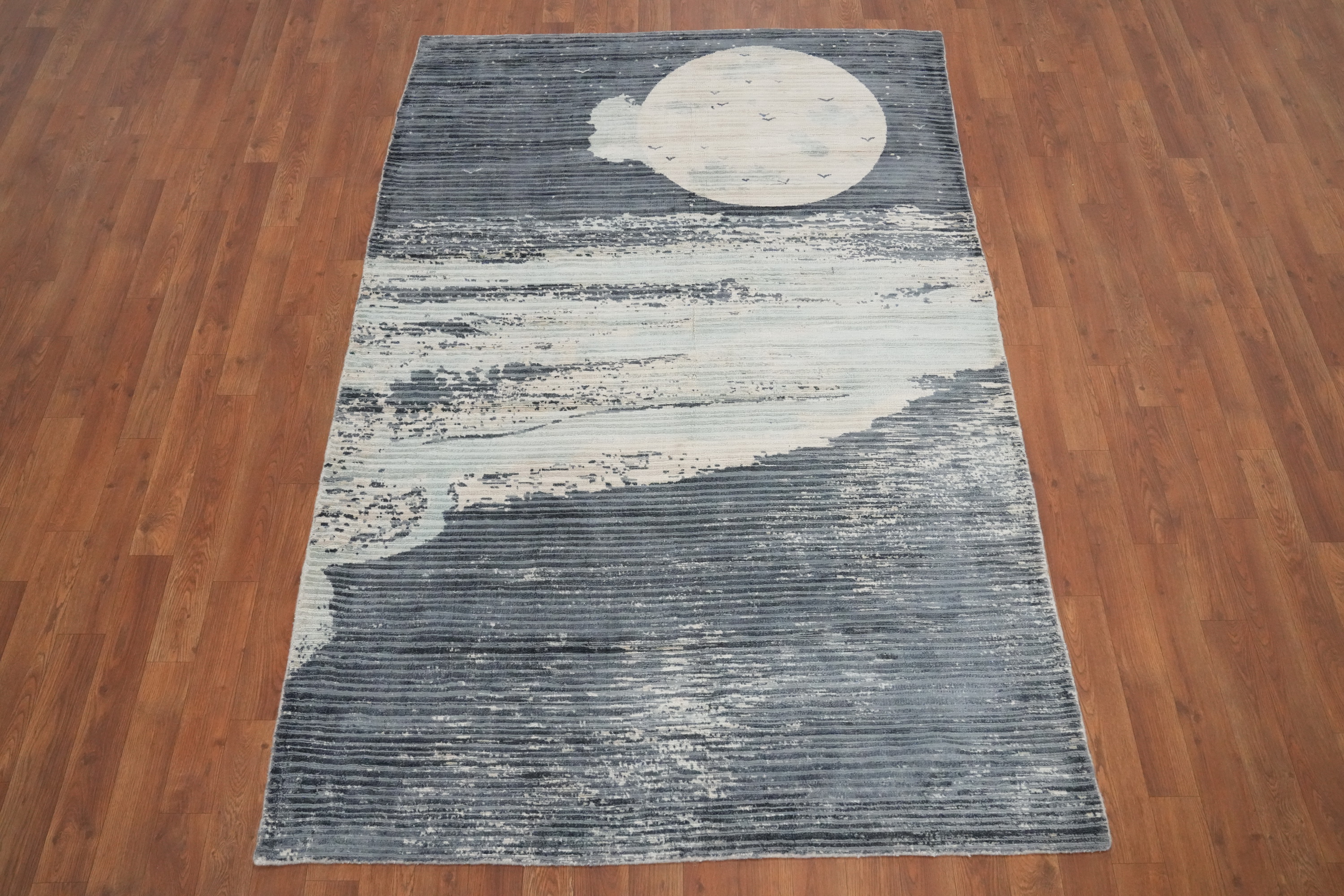 Moonlit Serenity Abstract Rug 4x7 Handmade with Stunning Evening Landscape