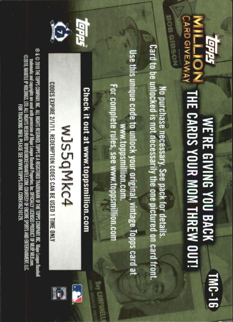 2010 Topps Million Card Giveaway #TMC16 Mickey Mantle - BB