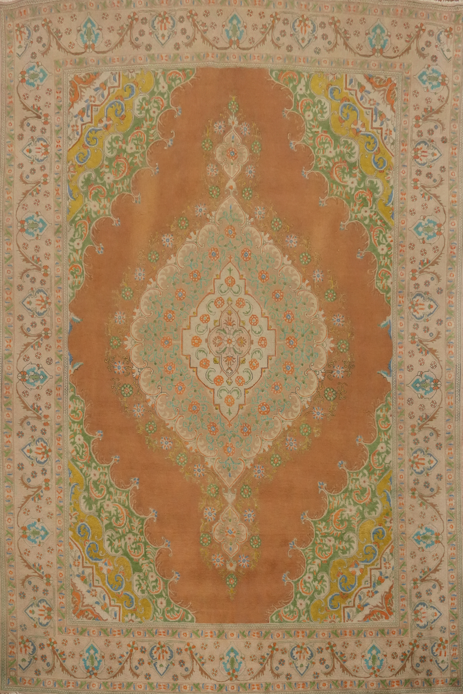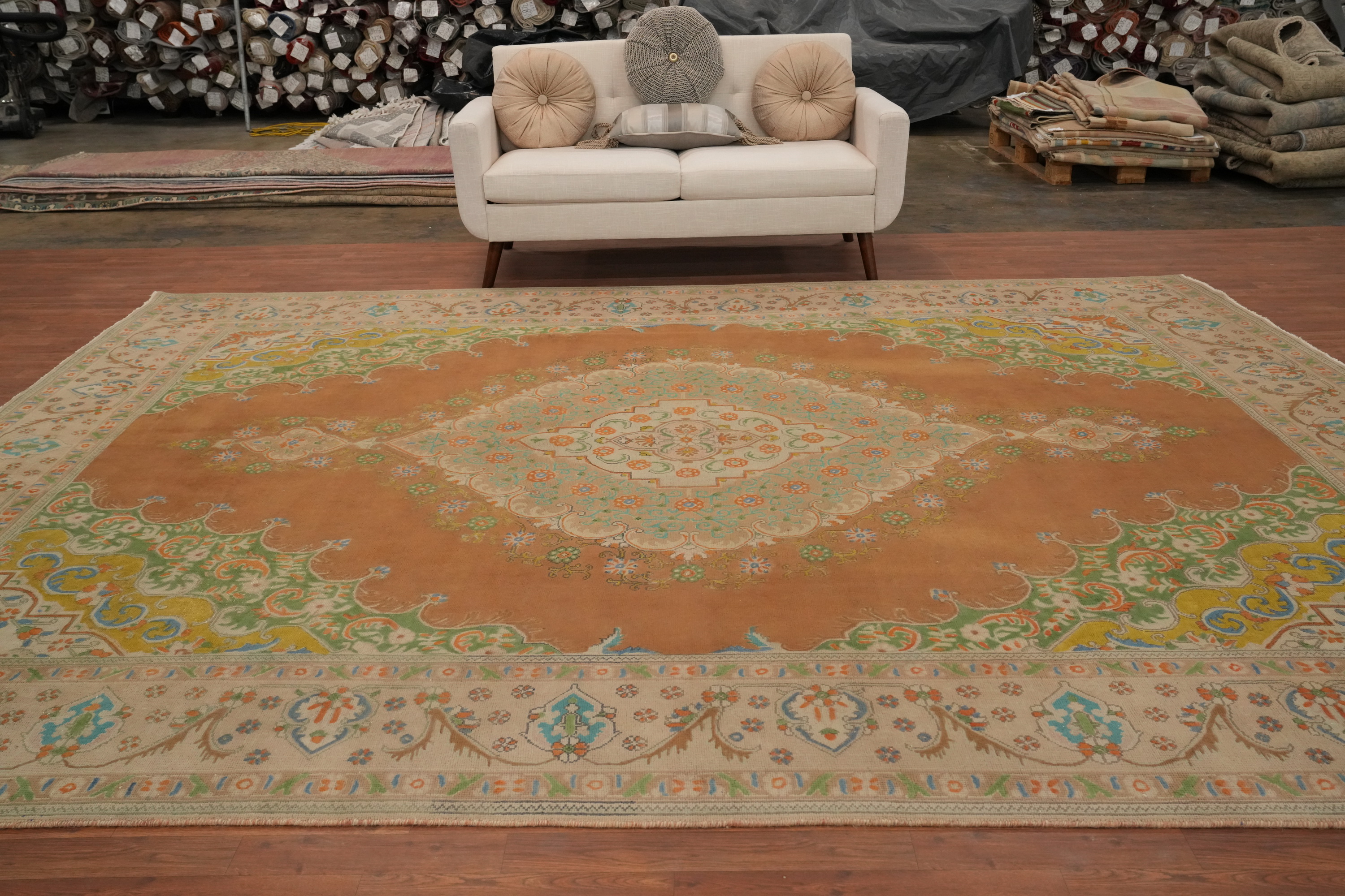 Orange Vintage Area Rug 10x13 Traditional Wool Distressed Hand-knotted Carpet