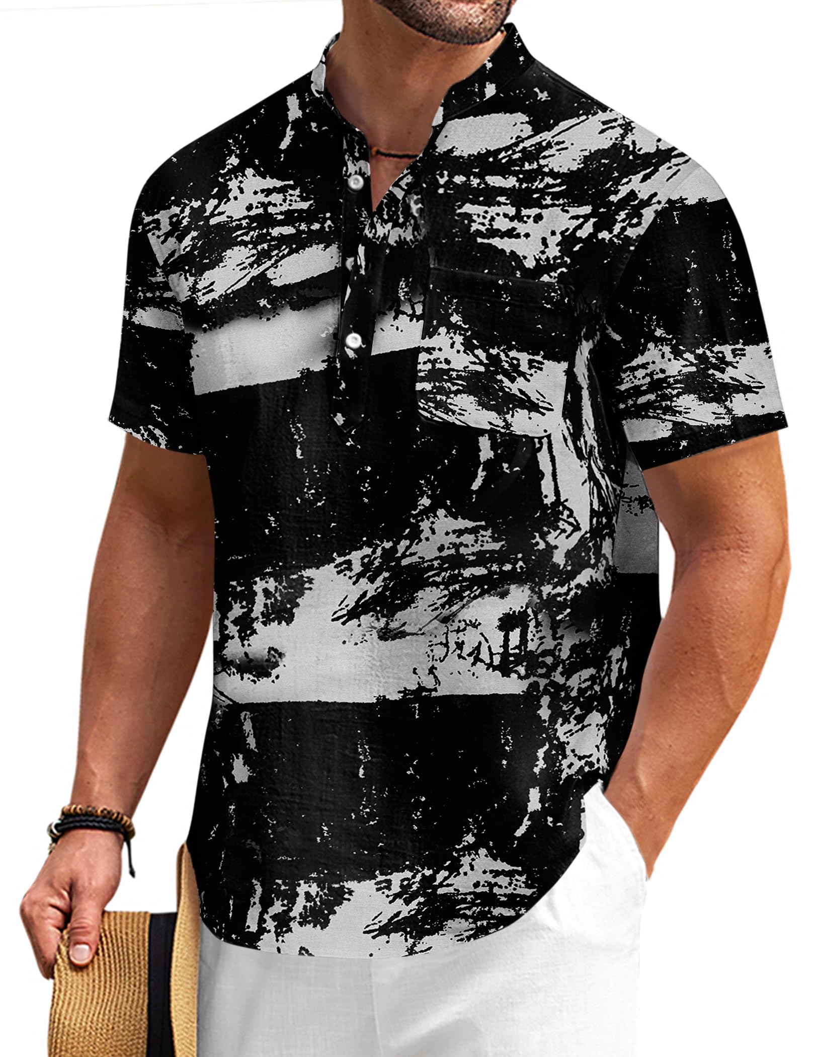 COOFANDY Men's Cotton Linen Henley Shirt Short Sleeve Hippie Casual Beach T Shirts with Pocket