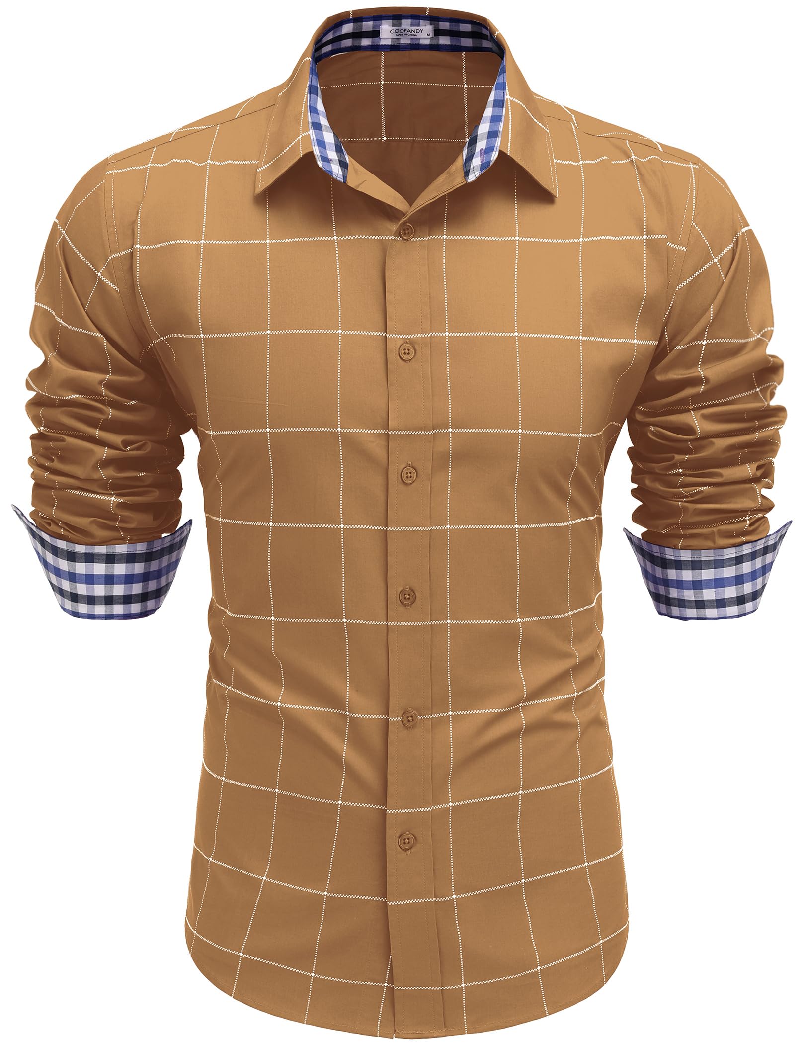 Men's Long Sleeve Plaid Button Down Shirts Regular Fit Button Up Shirt Brown XL