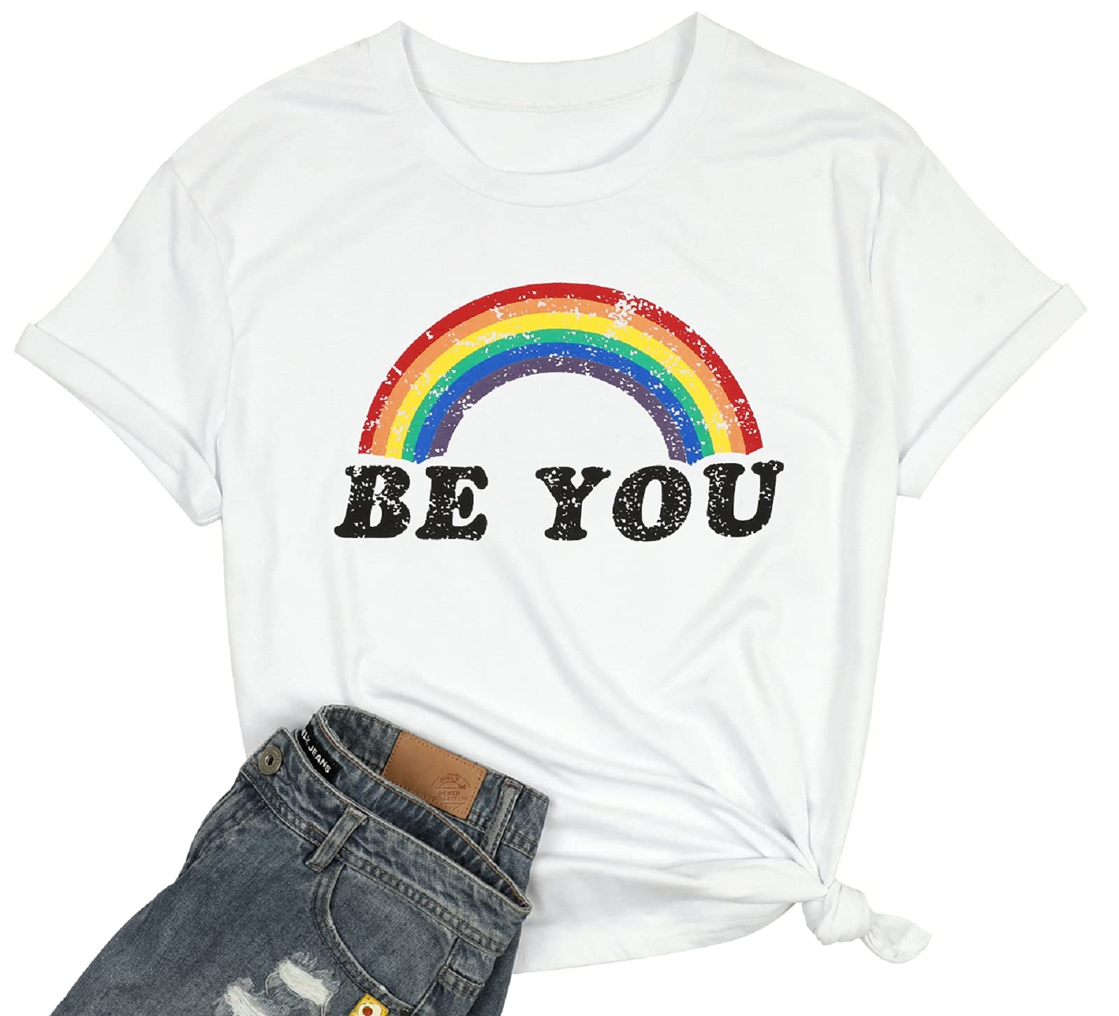 Package Including: 1*Juniors Rainbow Graphic Distressed Funny LGBT Tees