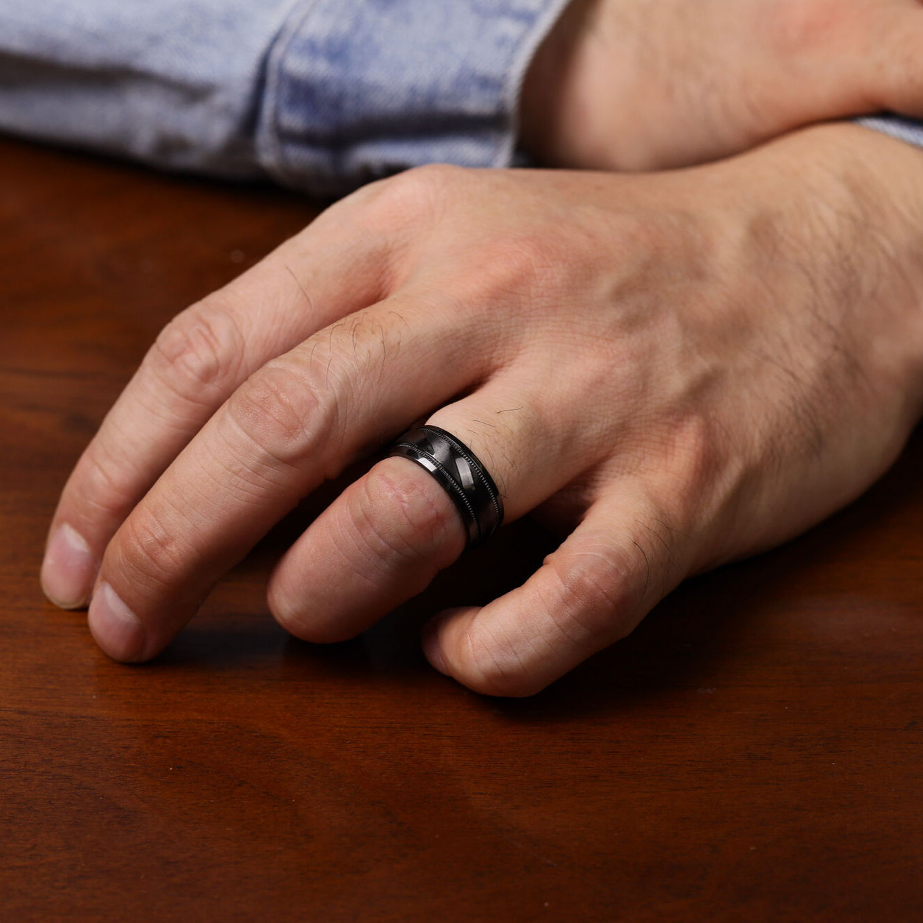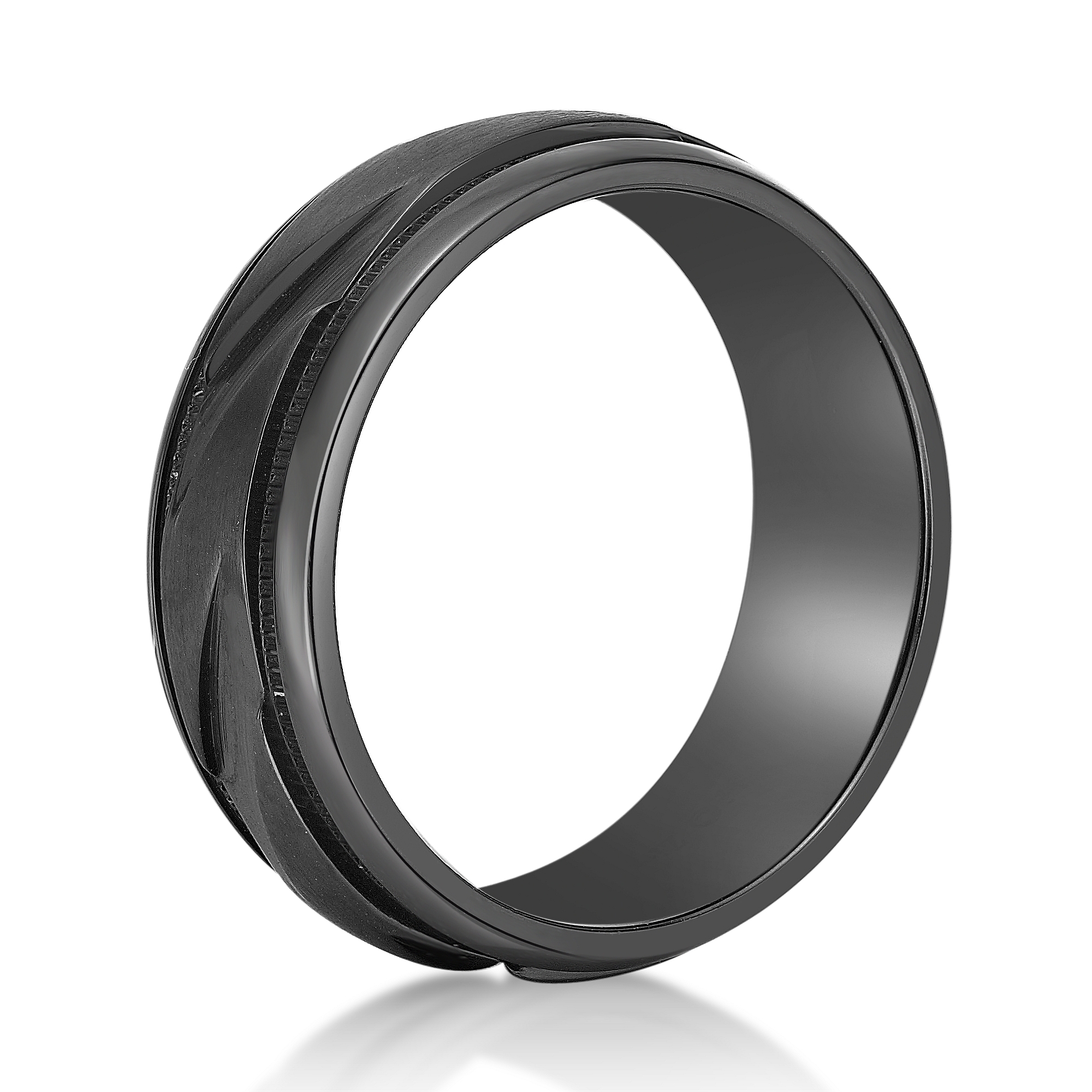 Elevate your accessory game and redefine your style with our Men's Black Zirconium Ribbed Pattern Ring. Make a bold statement that sets you apart from the rest and showcases your impeccable taste. Add this timeless piece to your collection today and experience the perfect blend of fashion and functionality. Don't wait any longer to upgrade your look - seize the opportunity to own this must-have ring now!
